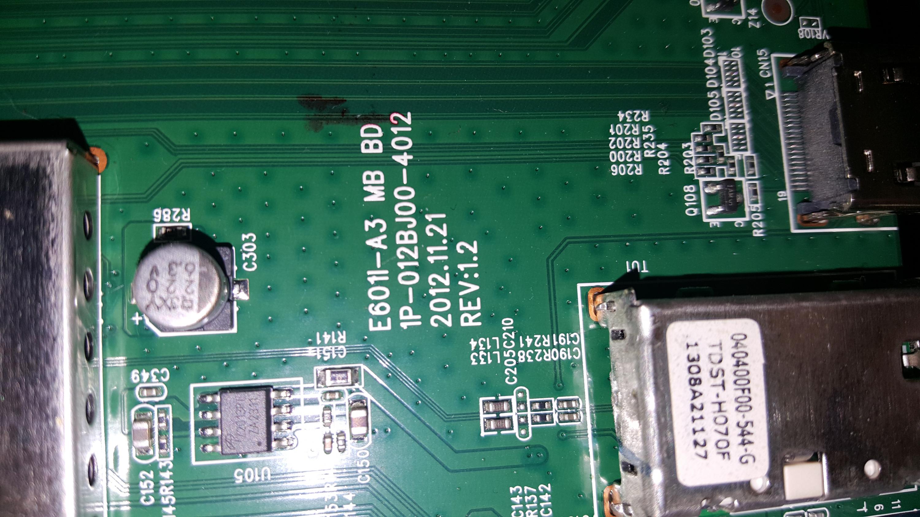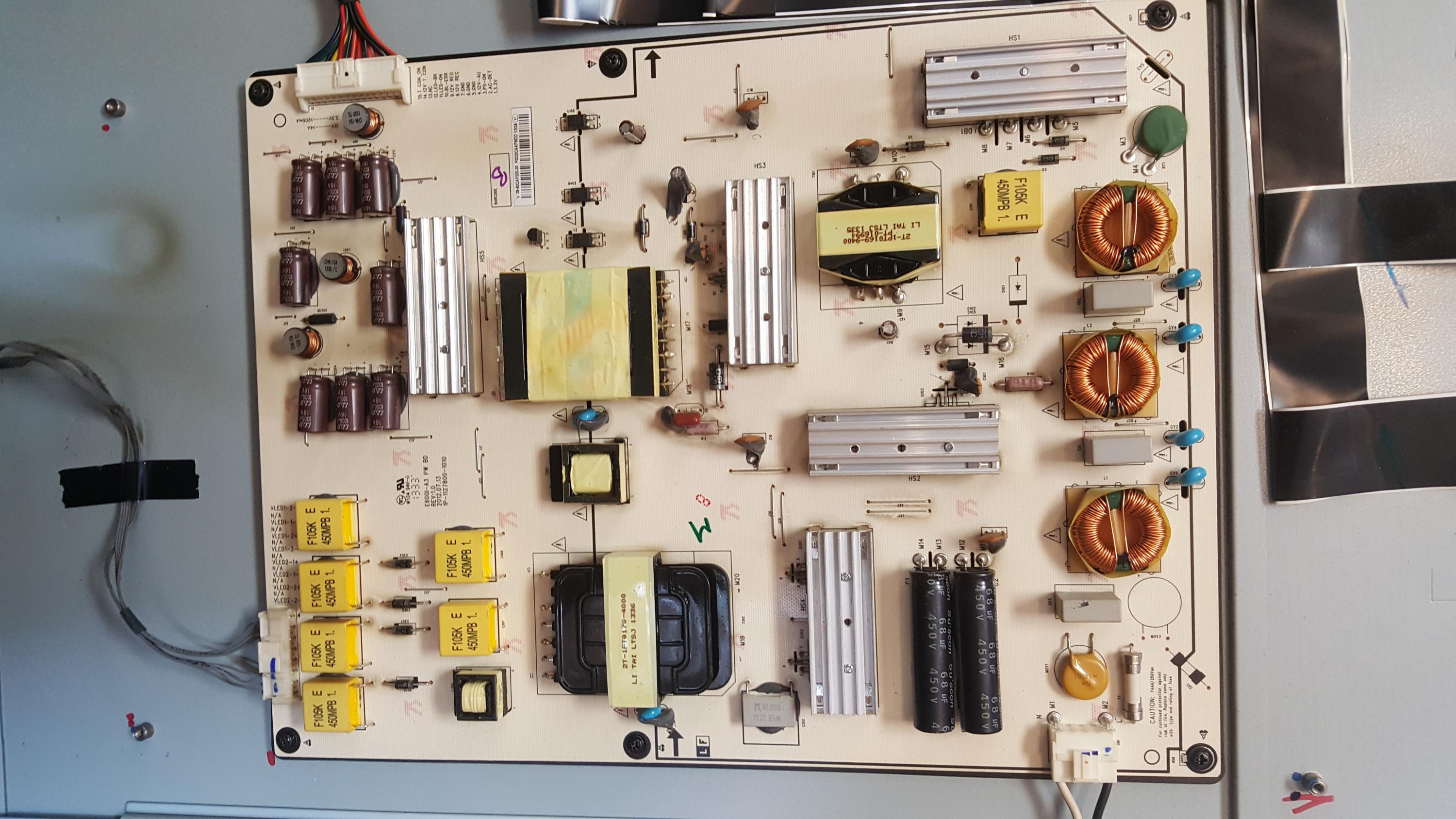 Hello again. This TV came in for no power, no standby light after a pretty nasty thunderstorm we had in here. I disassembled the TV and took some measurements on the power supply and determined that the main board was bad.