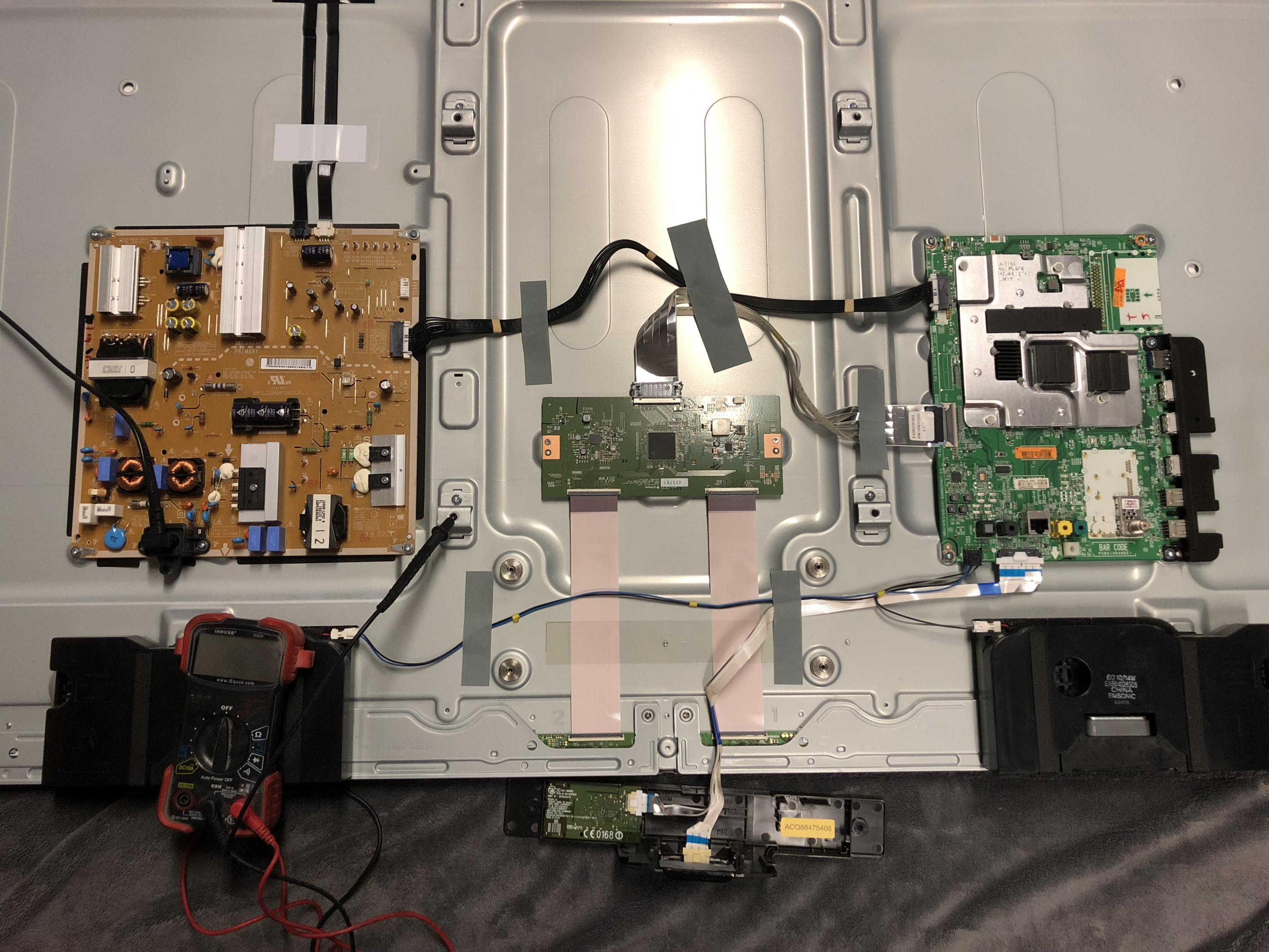 I am new, so hopefully I don't sound like an idiot. I am looking for some help diagnosing this tv. I don't have picture but have a standby light on the front of tv. When I turn the power button on the back light does not come on. I cant seem to figure out where the standby is on the power supply to test volts. Attached is a picture of what im dealing with and the volts I am reading for each one. First Set of numbers is when tv OFF second set is when its ON.