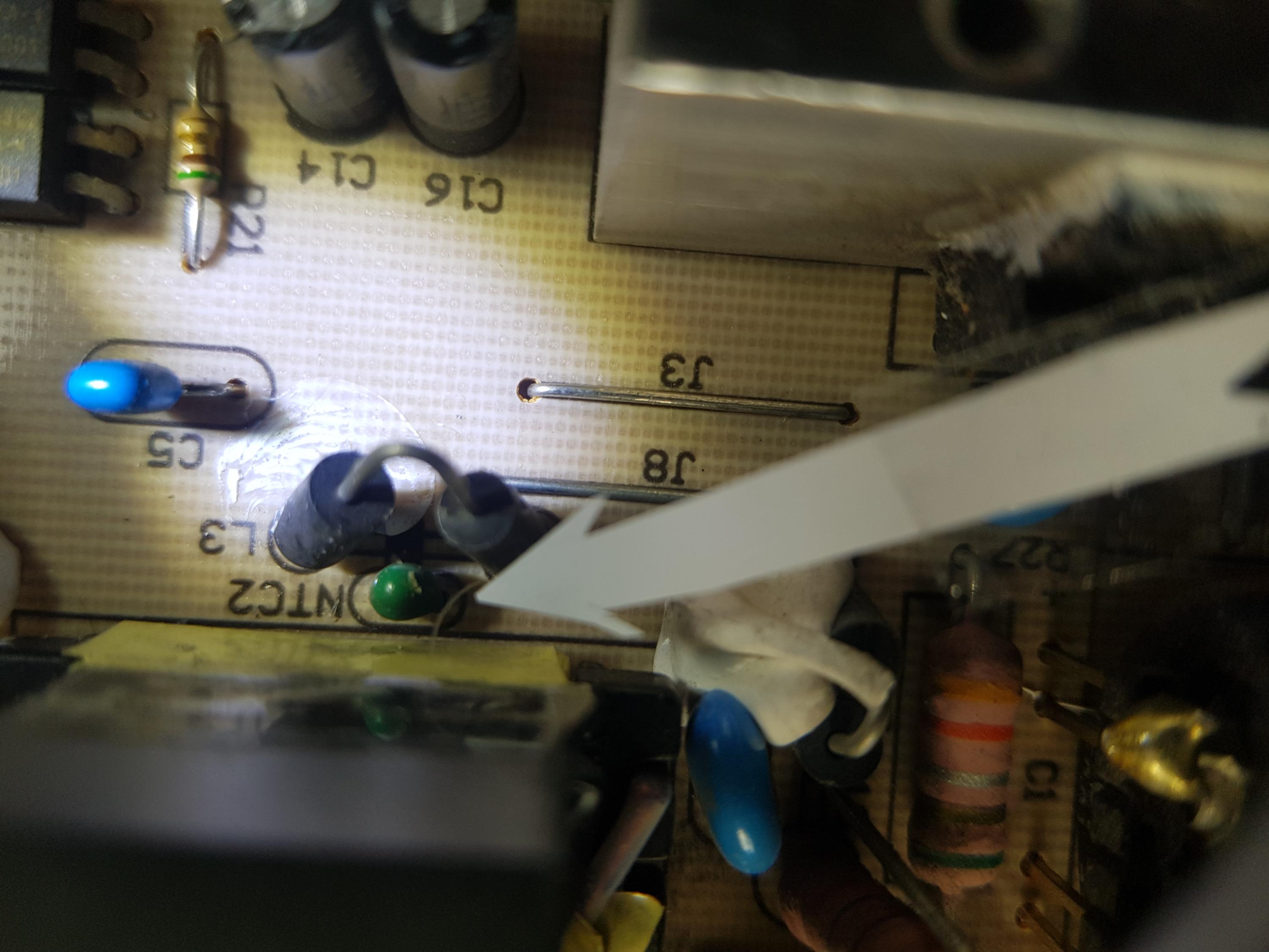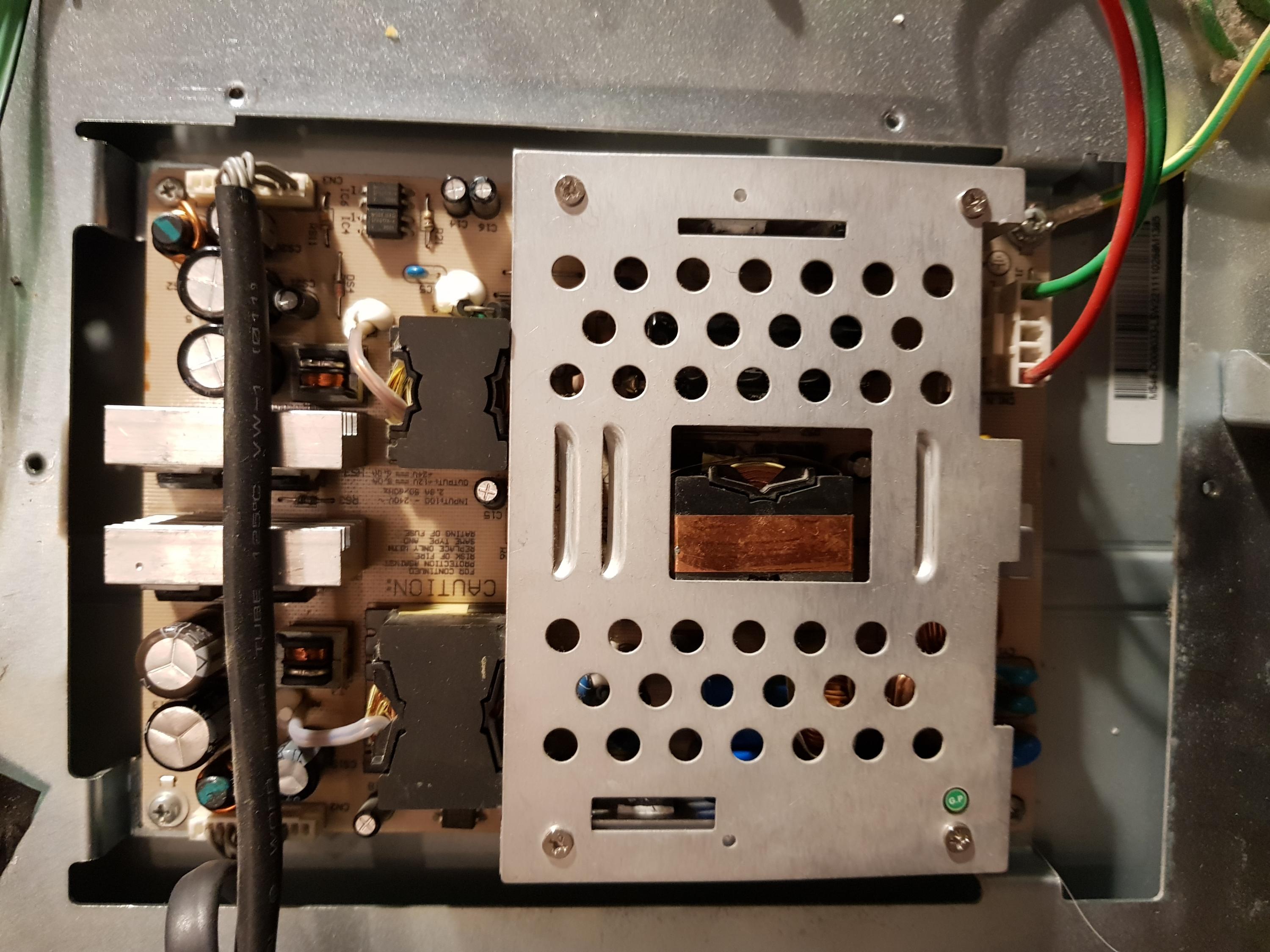Whipped the back off & couldn't see any obvious swollen cap's or burnt components (I checked the back of the PSU board too), so I powered it up again to check a few voltages.