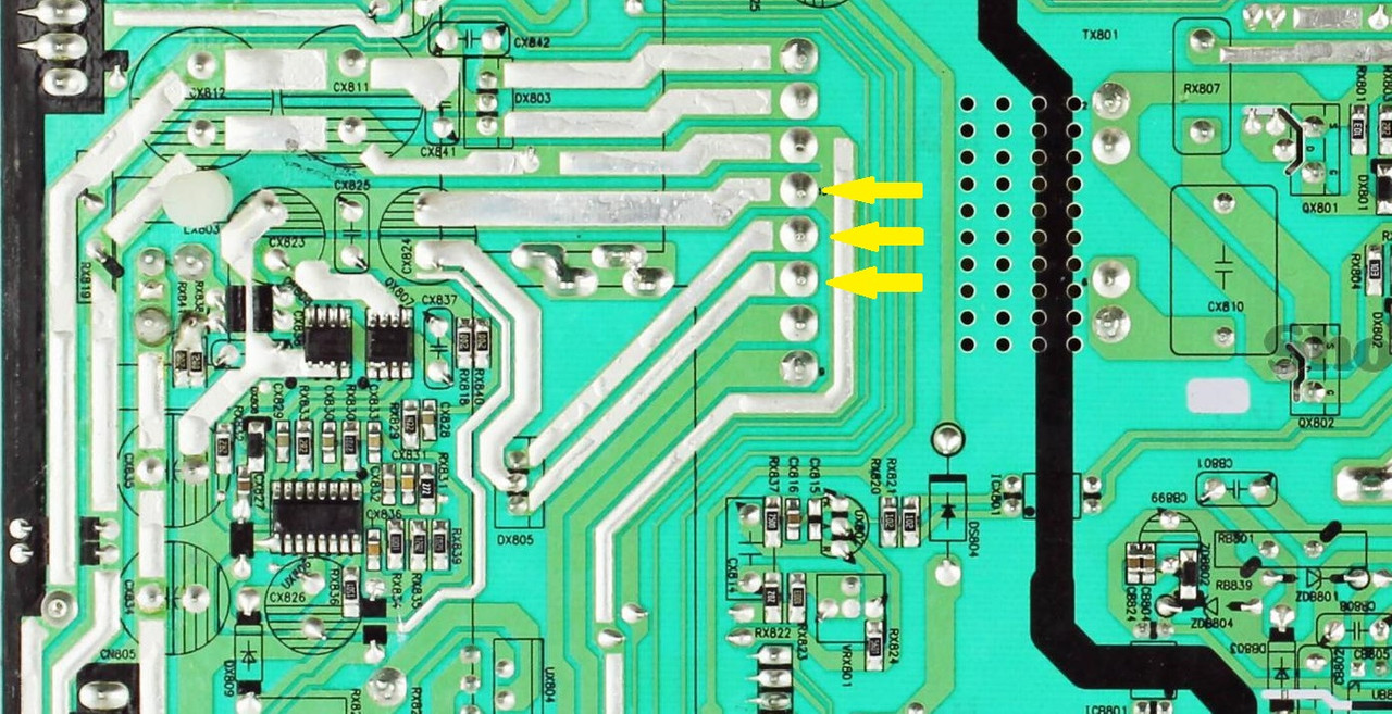 As soon as I connect this connector (CN801) I hear the relays that do attack and detach and then I discovered that the card near the heatsink by a kind of code with the green led.
