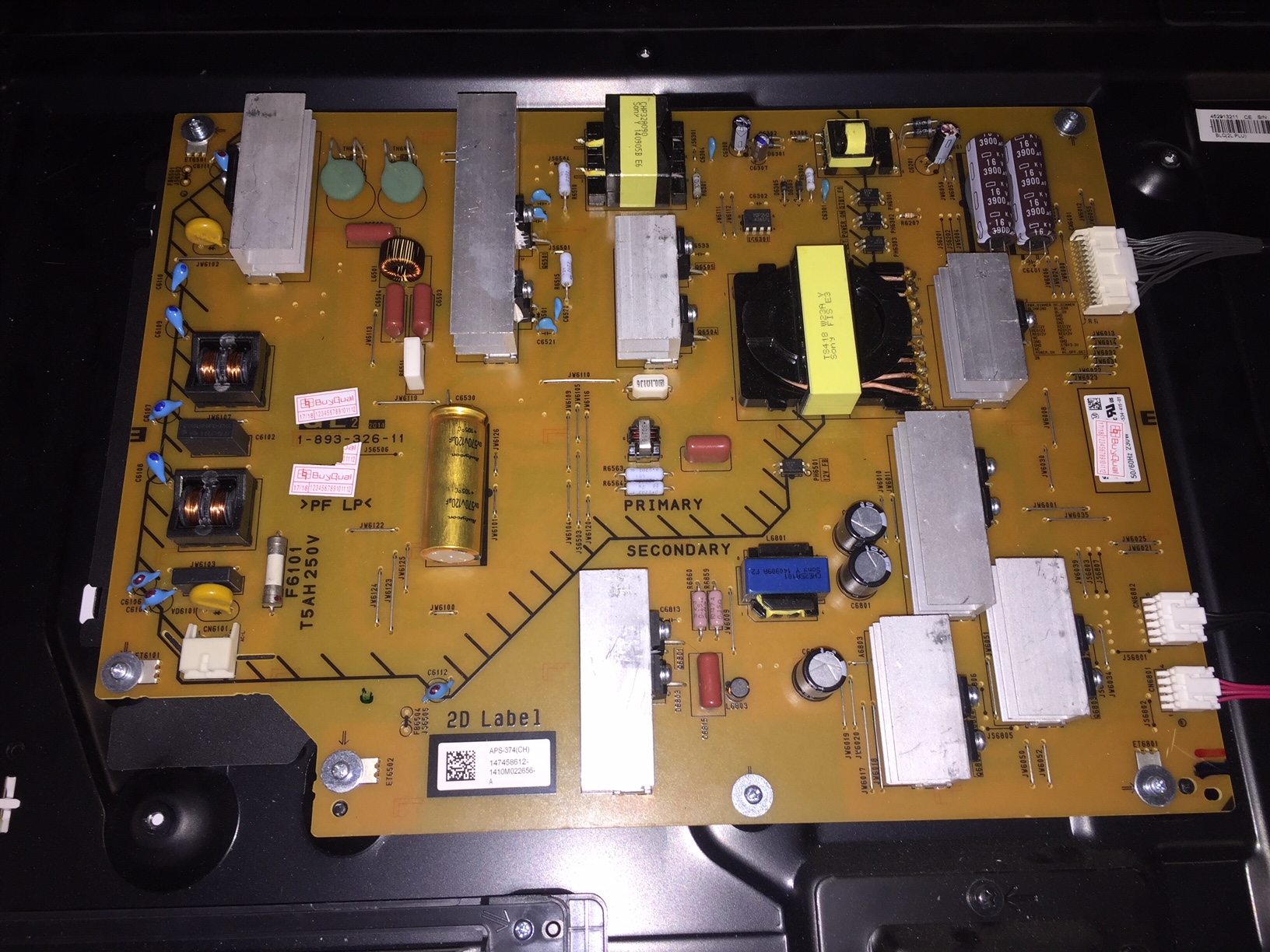 by jb_BakHey guys great forum glad to have found it. I bought a Sony XBR 65X900C cheaply because it didn't work. No signs of life at all not even a light/led. All I hear is a brief high voltage sound when I throw the power to it.