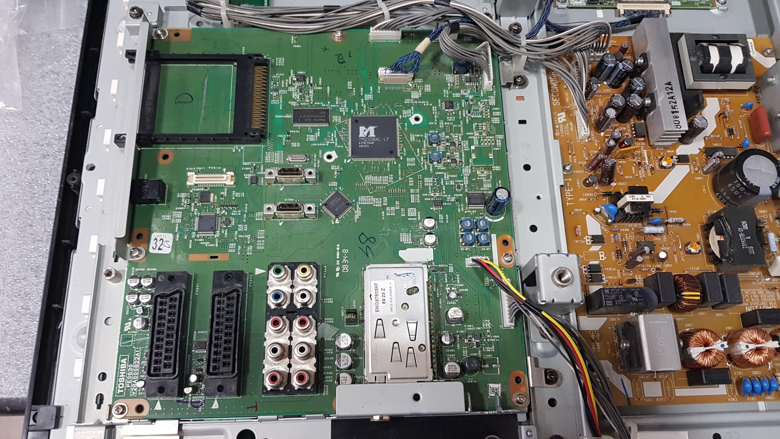 Toshiba 32AV555D when plug in to mains will turn himself on without pressing power on button and front panel buttons does not work, remote control as well. Only green led will lights up.