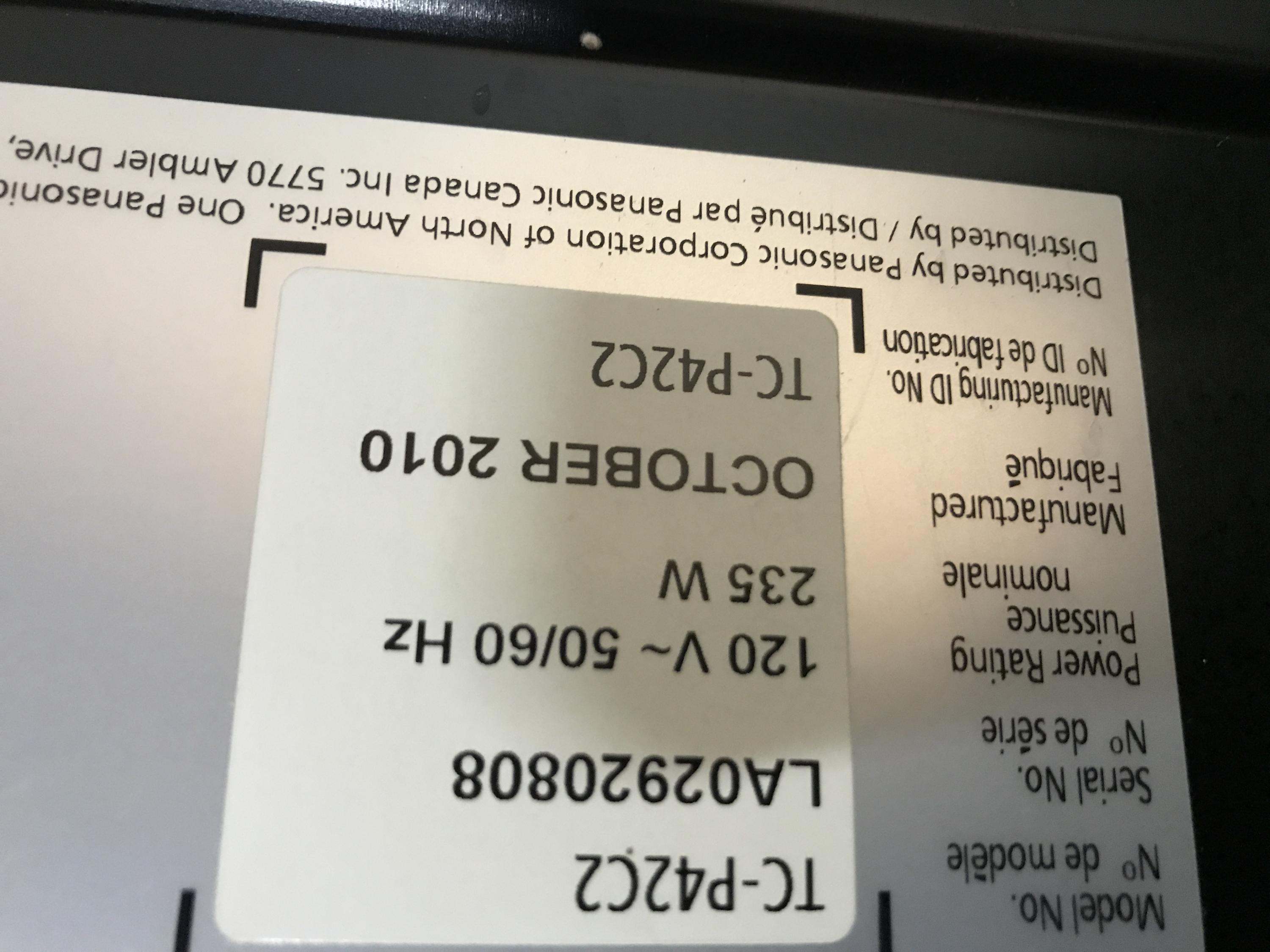 I have a Panasonic TC-P42C2 with a vertical bar in the left first quarter quadrant. It runs from top to the bottom, with a thin vertical color line in the middle. When the menu is not displayed, only a thin line is visible.
