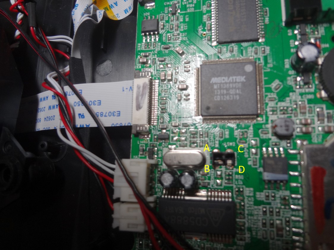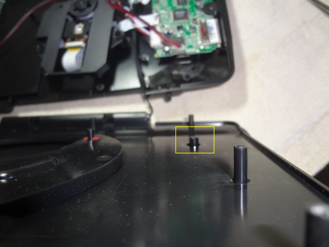 I opened the dvd player and i noticed a round-peg type thing that goes into the guts of the dvd player when i close the lid (see picture "2_Round_peg_1"). So i now went into the "guts" of the player and found where the round-peg made contact (see picture "3_pic_of_board1"). I put a yellow square box around locationwhere round peg makes contact.