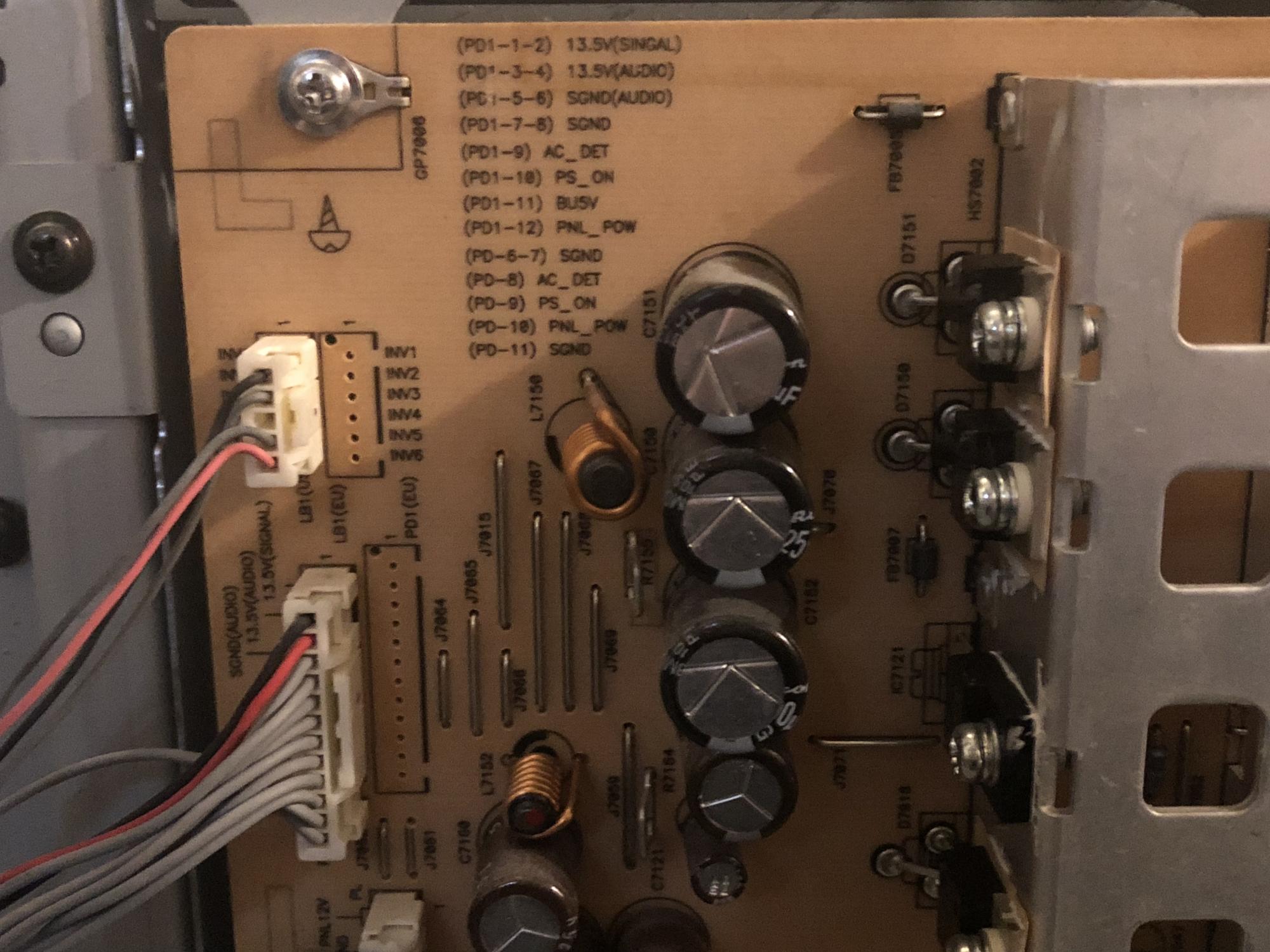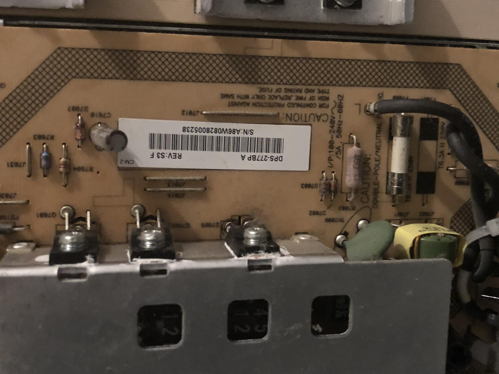 For us to help we will need good clear pictures of the whole backside of the TV showing all the boards, and the straight shot pictures of the whole top and bottom side of the power supply board so we can read the printed texts on the board.