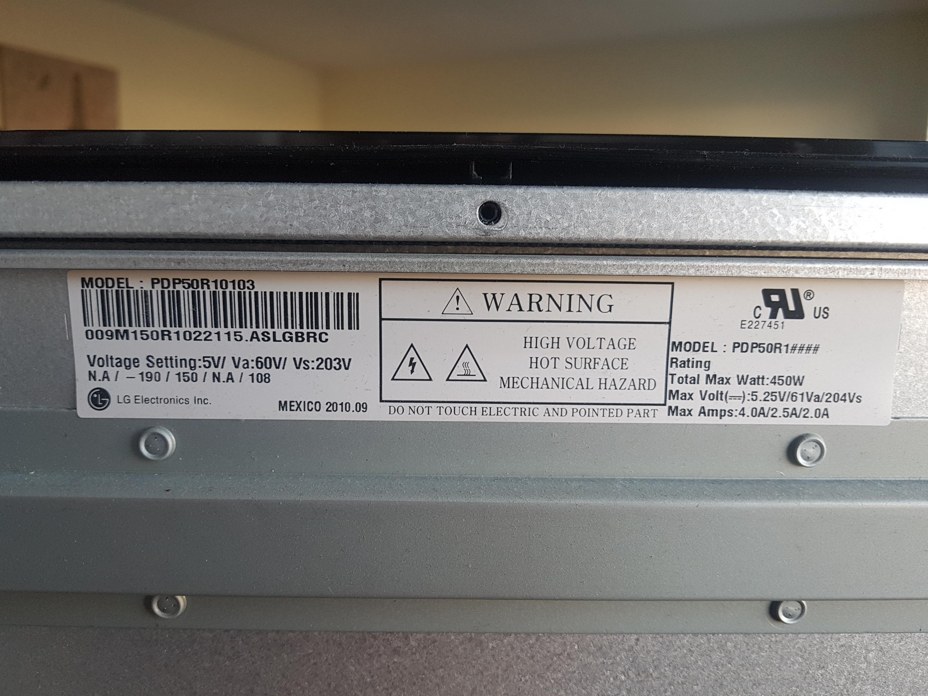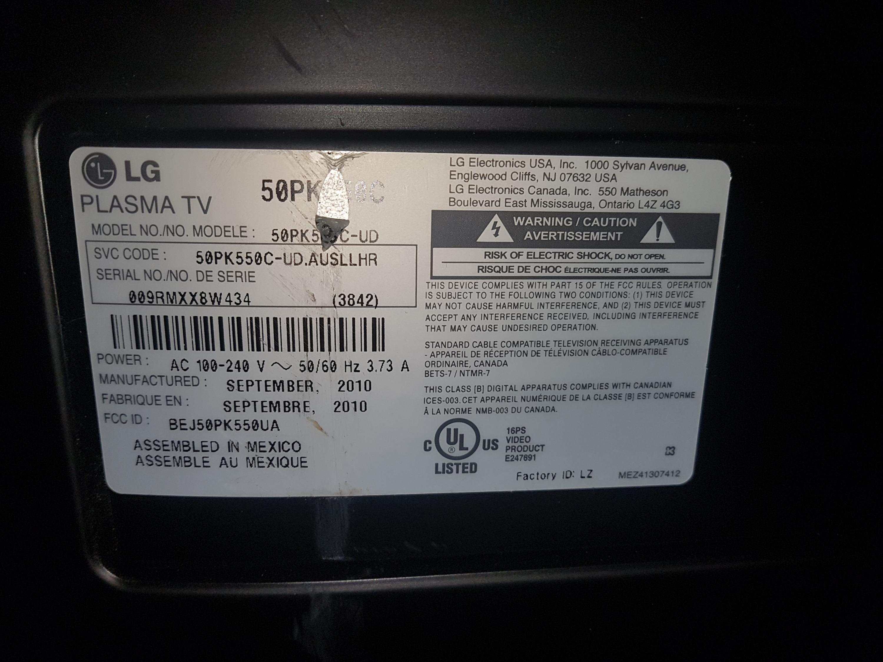 Hello Everyone. I'm back again with another TV issue. It is an LG 50PK550C-UD Plasma.