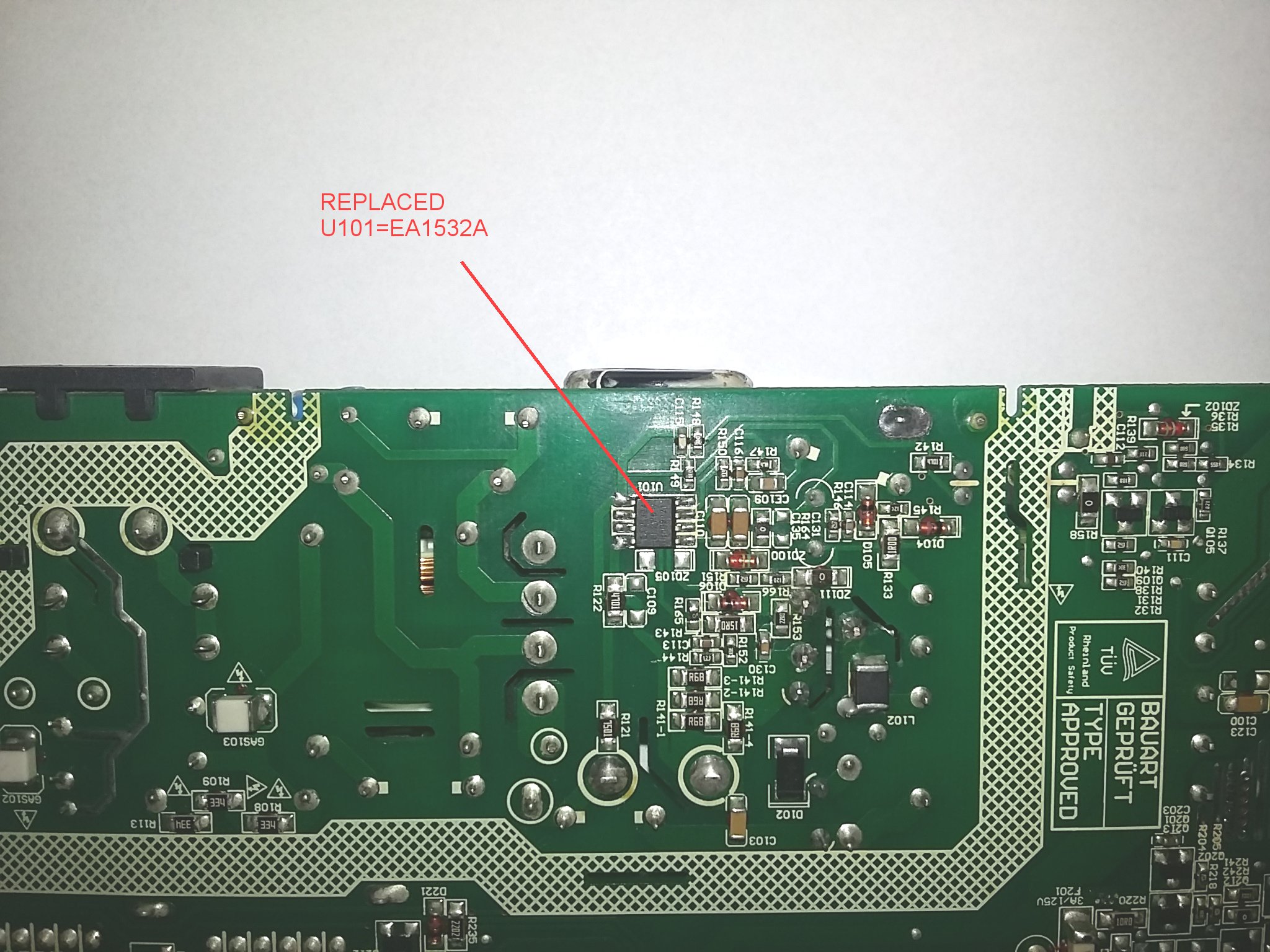 U101=EA1523A, Q107=11N80C3, optocoupler U100=PC817.