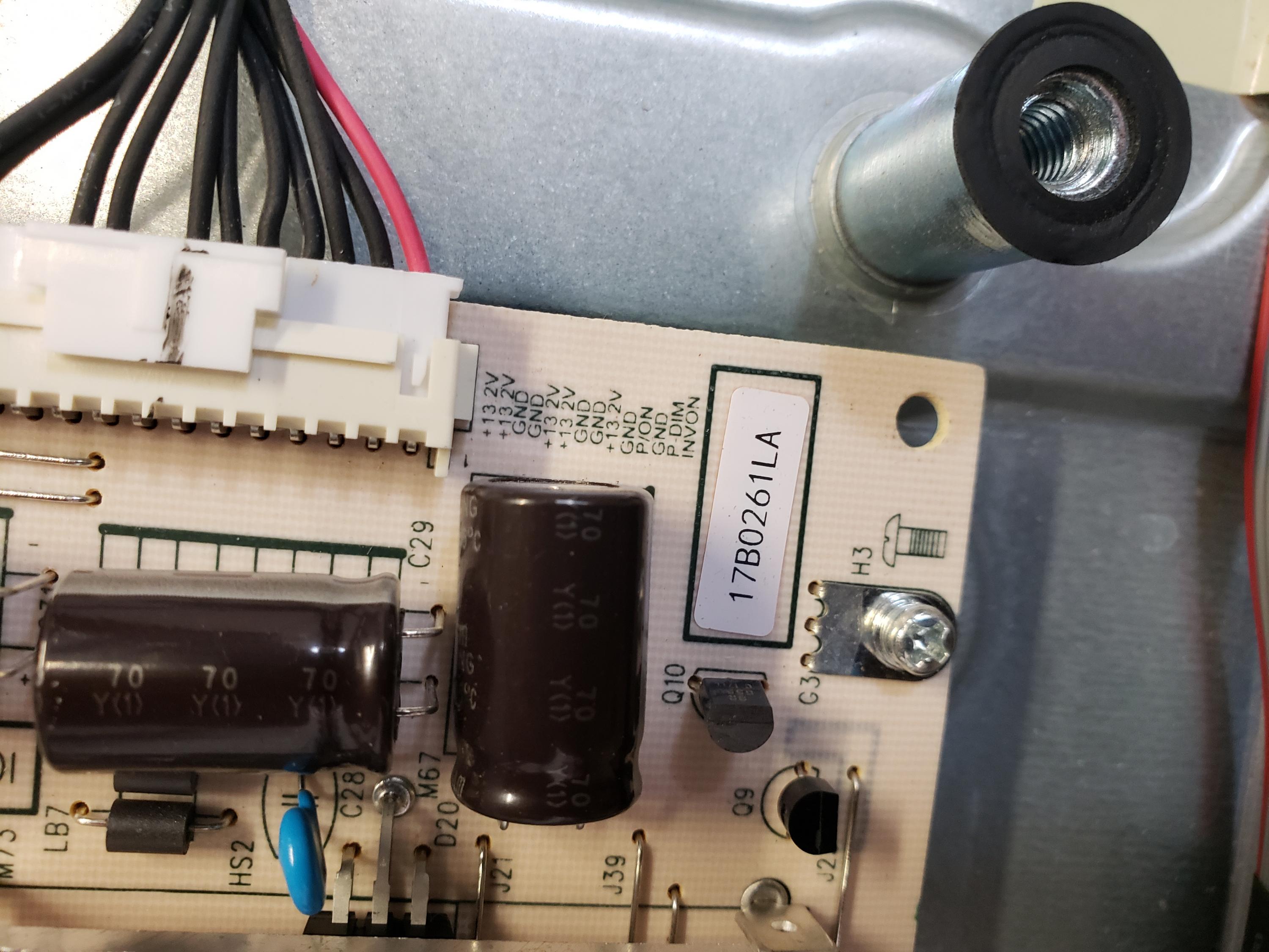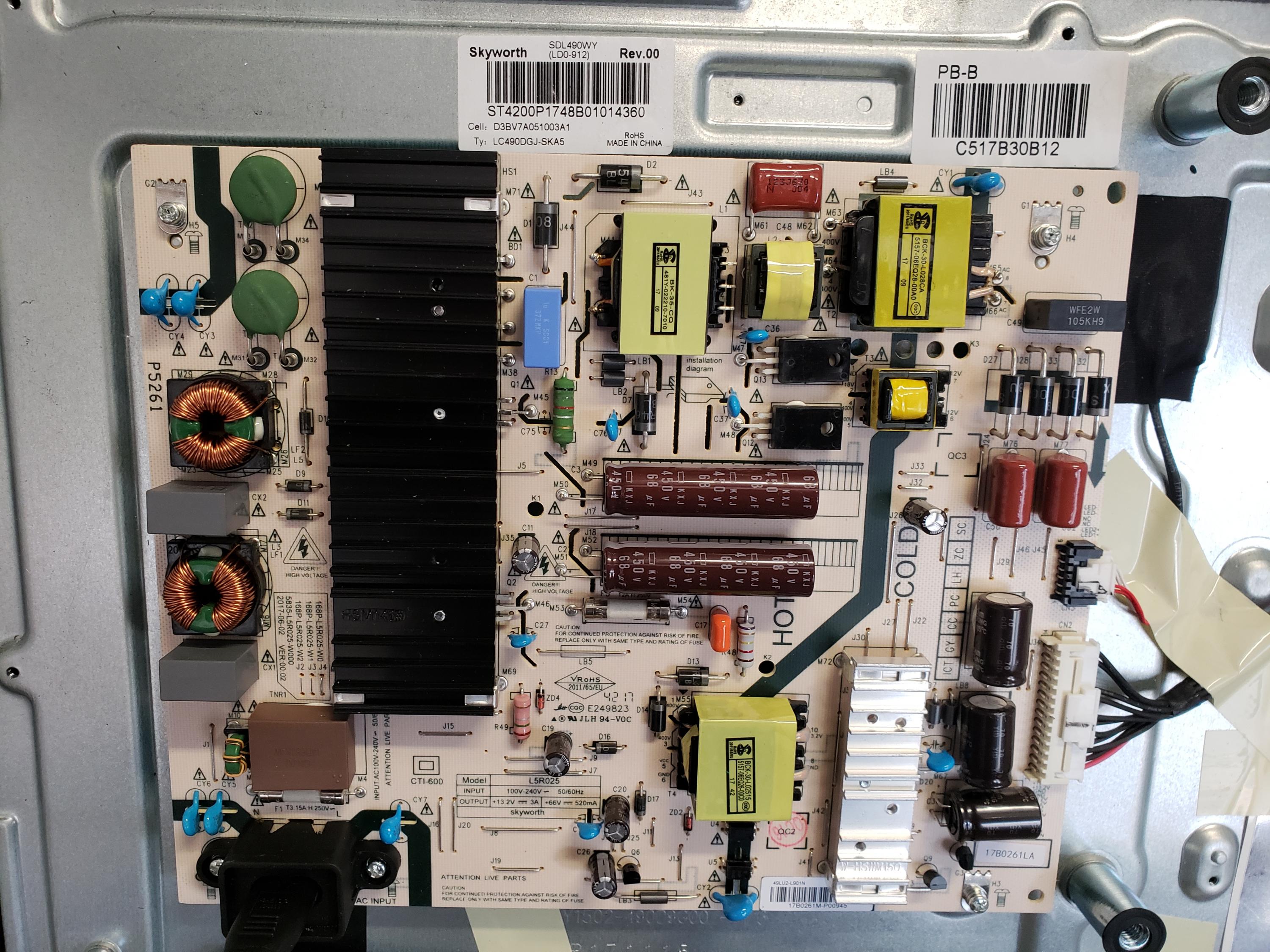 Could low voltage on SMPS be causing this behavior? I am stumped. PSON is 0 volts in standby, 1.84 volts when on. label on panel says Skyworth?