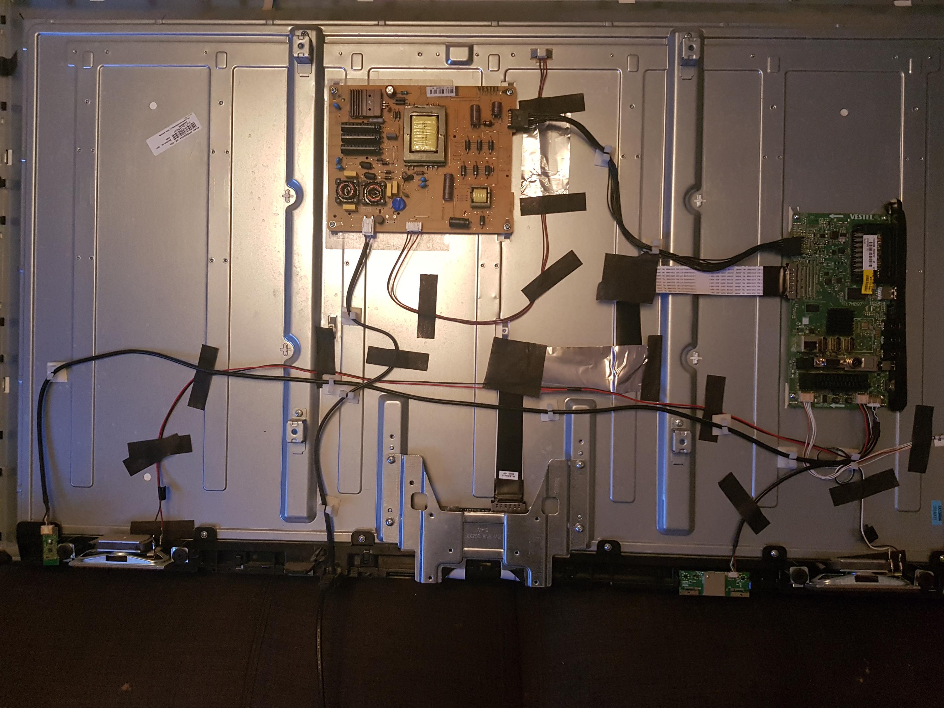 - TV came with vertical bars and no image. Found faulty TVS on left buffer board. Also replaced T-Con (may have damaged the original while hot air removing components, board has slight warp) and have full image but few horizontal lines on the screen. Some of the lines appears to be 2 pixel tall while others are 1 pixel tall.