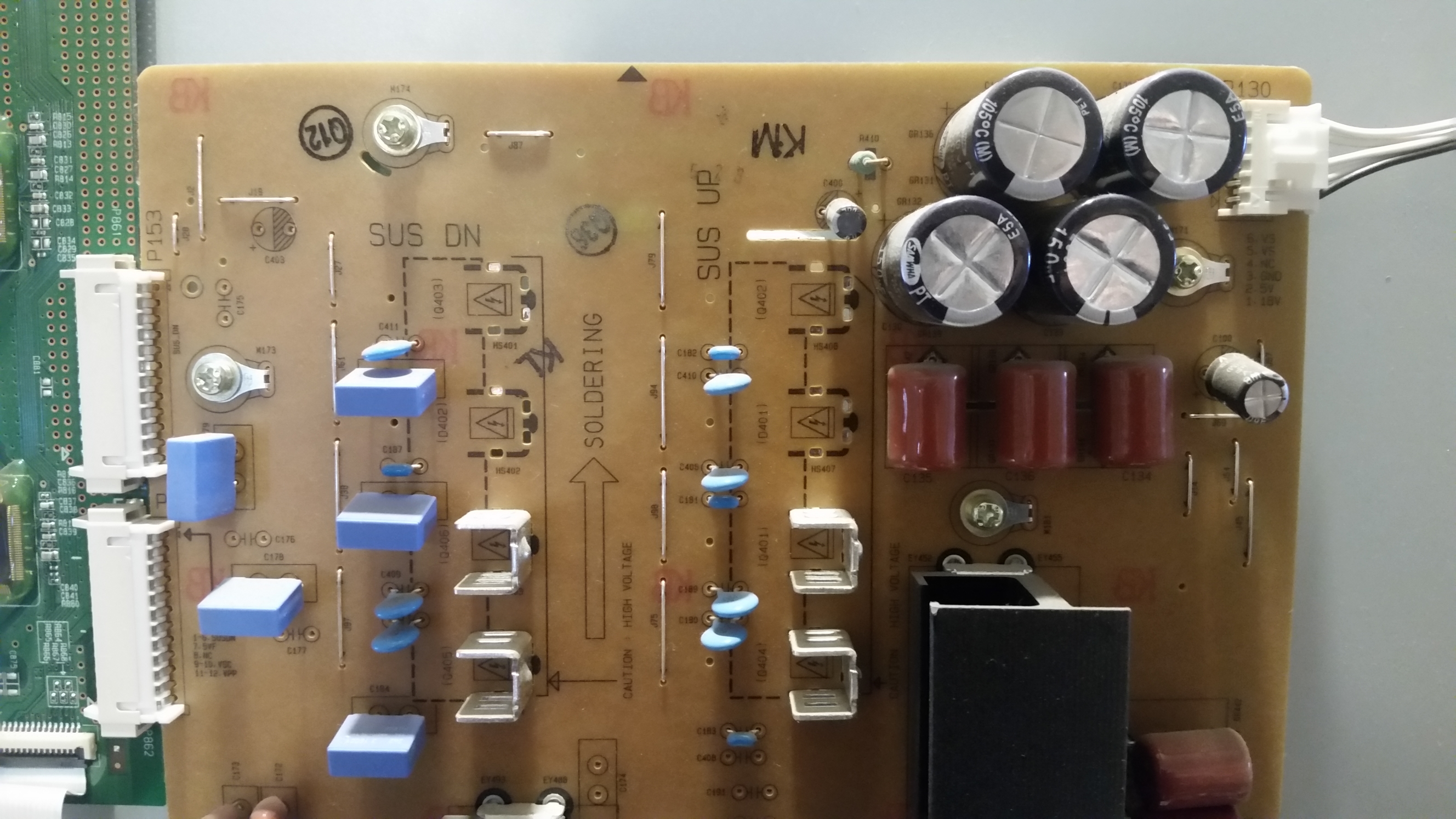 Edit: Grabbed up a complete Y-SUS and buffer boards from the spare parts box and the set powers on / stays on with these new Y-Sus and buffer boards installed/ connected, But still no picture.