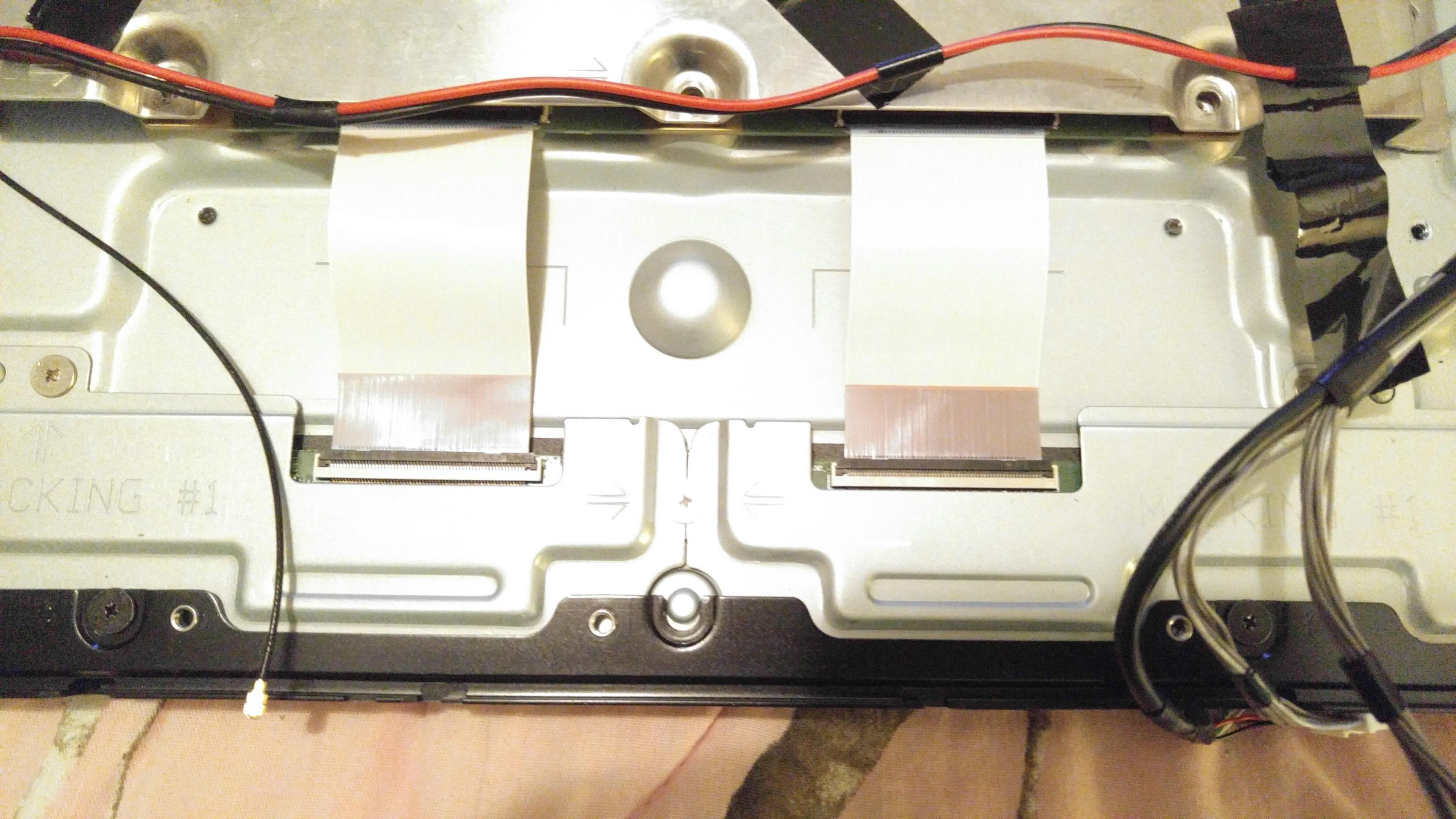 If I remove one of the ribbon cables, half the screen (left or right) goes white, but the bottom half still has issues.
