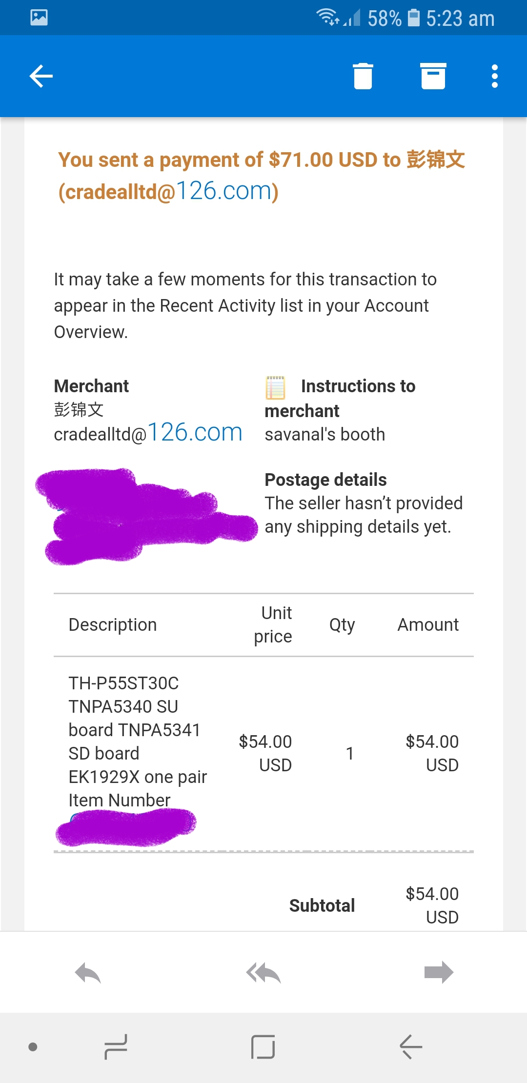 After finding out that the item I received was defective, I tried to message him for a refund. While he was responsive, he talked a load of rubbish. And when I checked the PayPal record, I found out it's the same guy trading on cradeal.com, which some of you already know sell dodgy parts. If you haven't already, see for yourself in the images attached.