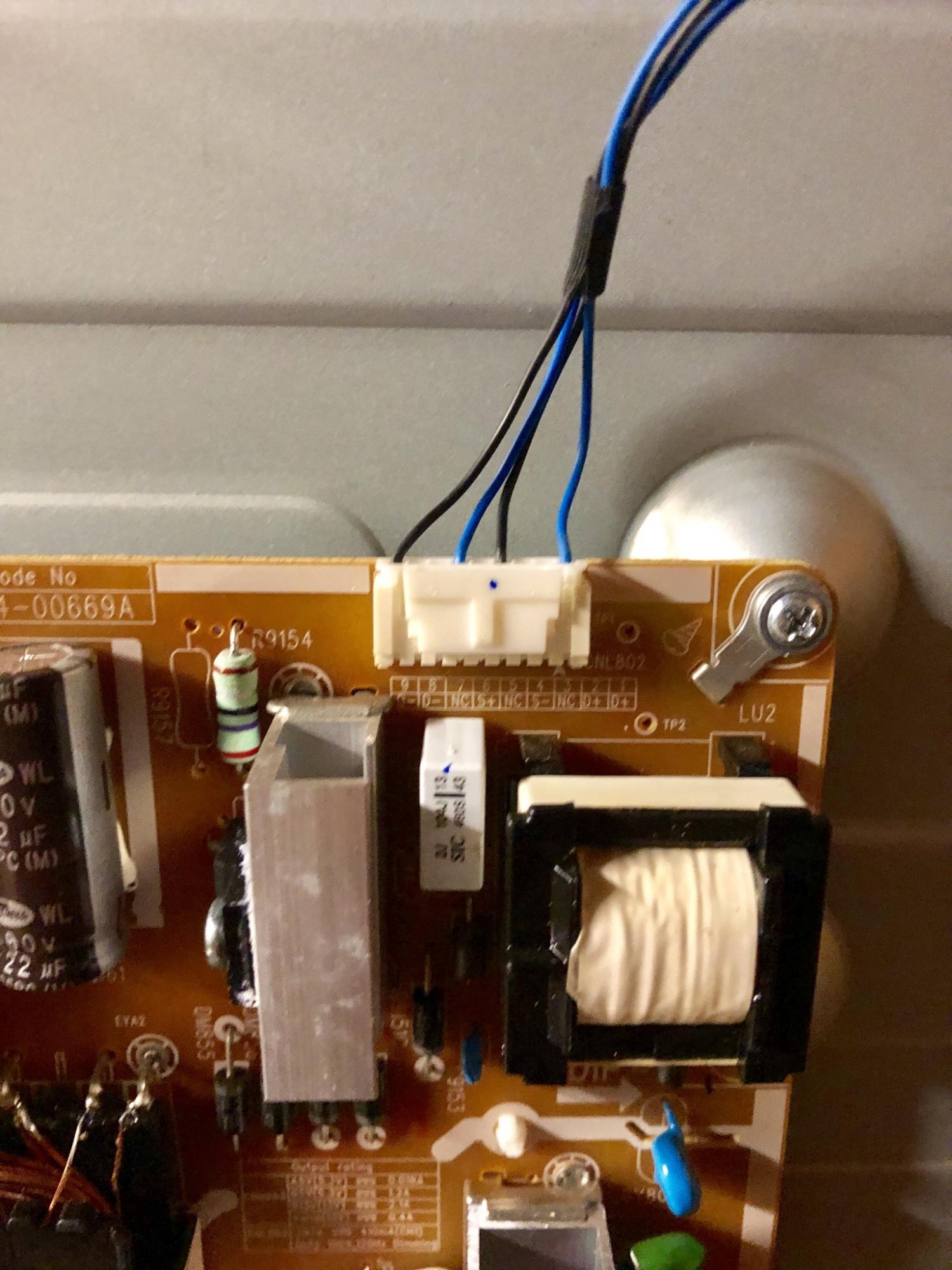 Hello, I have a Samsung UN60FH6200F LED TV with no backlight. It has sound. I can do the flashlight test and can see the image. Here are some voltage readings on the connector that powers the panel. Top connector of power board. Looking at pic, from left to right: