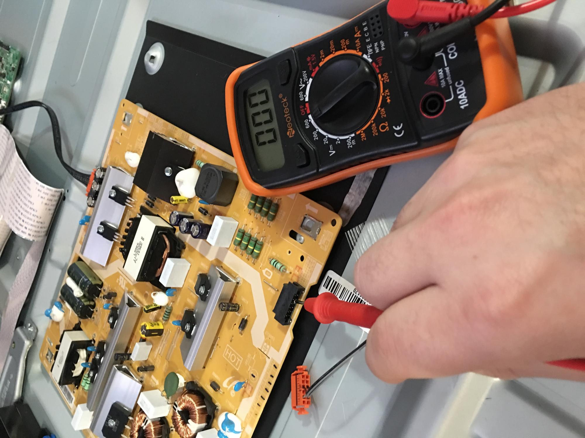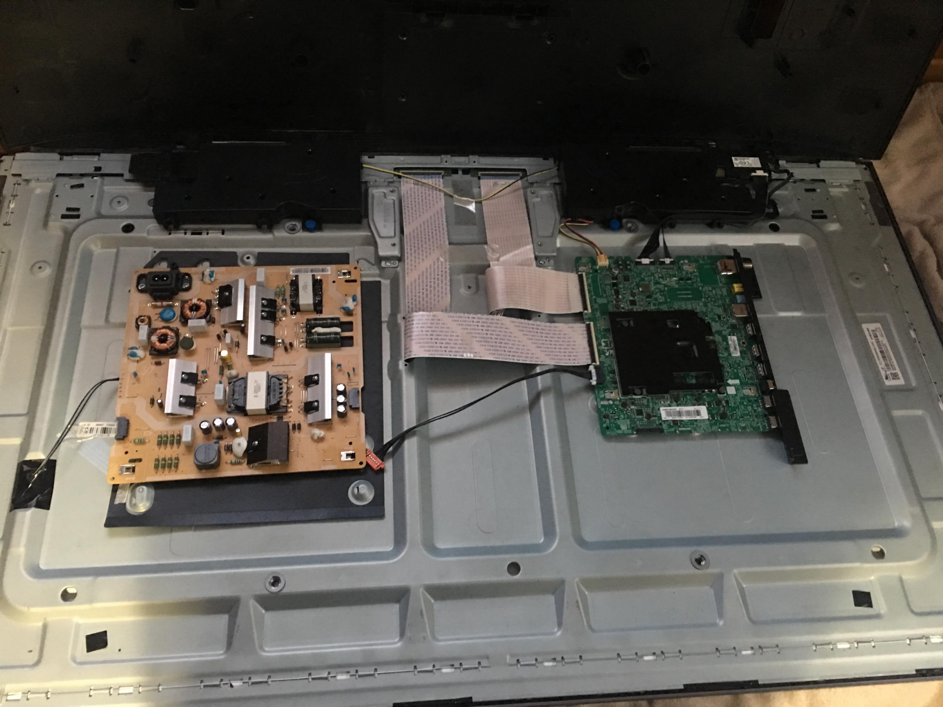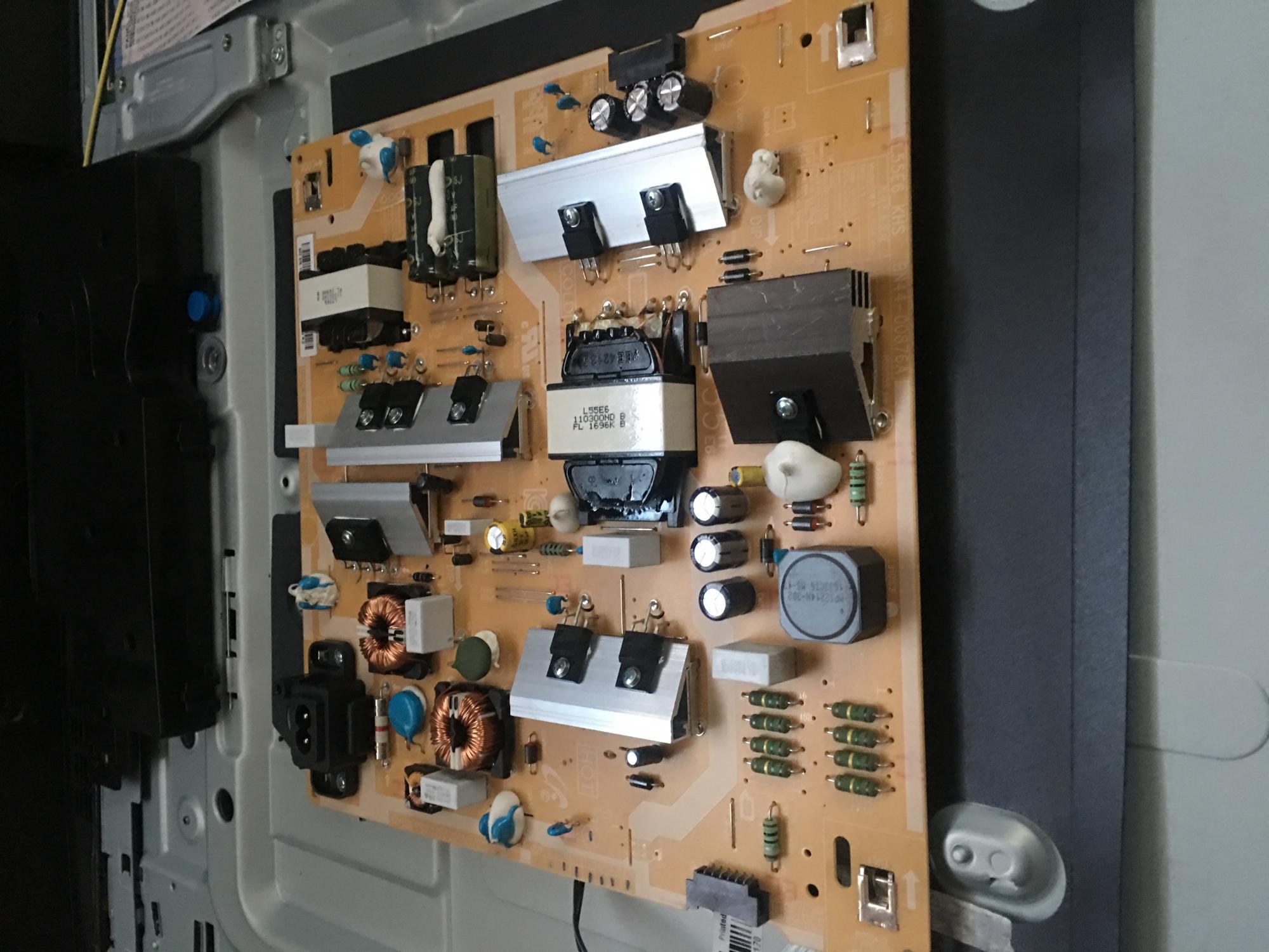I took off the back of the TV and there are only 2 boards. A yellow power supply/LED board and the main board. I looked at the capacitors and none of them looked like they went bad. I unfortunately do not have the tools to test voltages but any advice would be helpful. The main board and power board would cost me roughly $30-$40 each so I am not too concerned about having to purchase one or both of them.