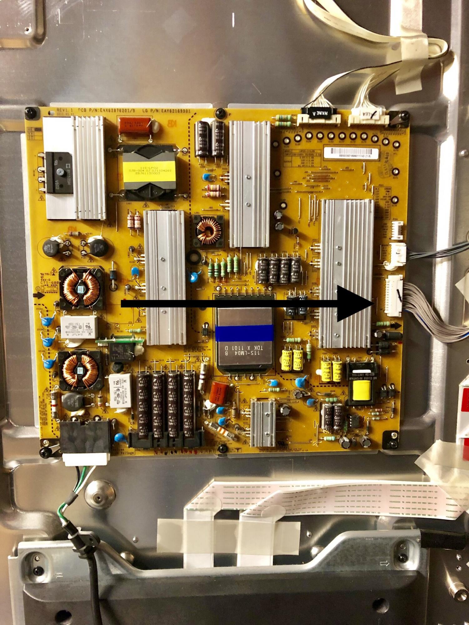 I picked up this TV from the recycle center . LG 55LV5500-UA. When powered on, the power indicator goes from red to white. It has no backlights and no sound. I tried doing the flashlight test and didn’t see anything. I took some voltage readings with power on. Meter set to DC volts, negative lead on Metal tv chassis. See pic: