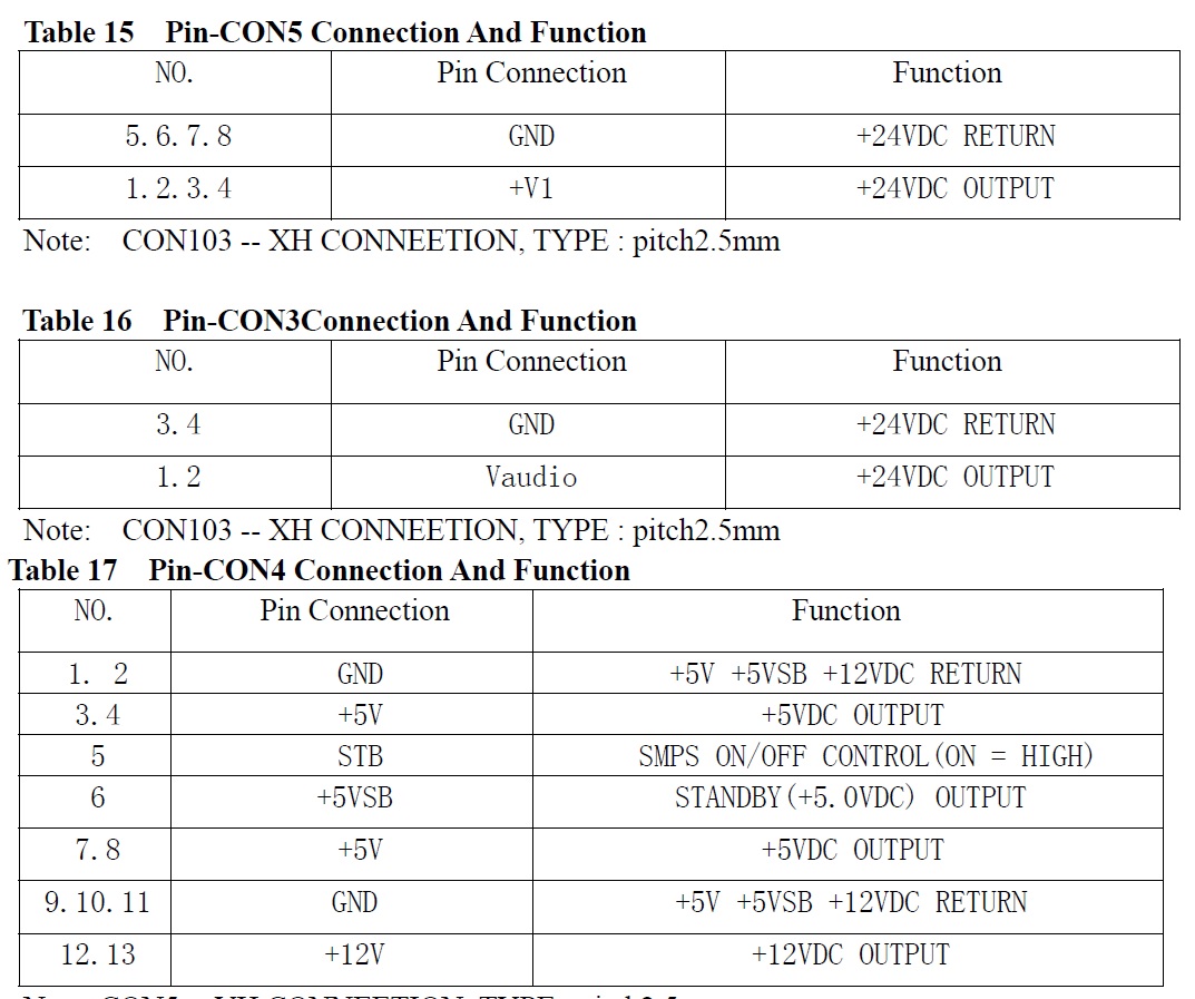 Pin 1,2 Vaudio +24VDC OUTPUT ---->0 VDC