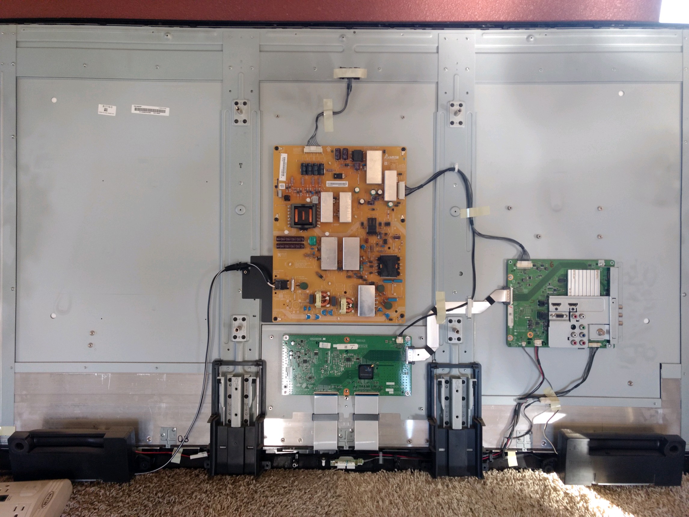 I picked up this Sharp LC-60LE600U with the complaint the TV would not turn on. The ICON would illuminate as soon as the TV was plugged in then go out about 10 seconds later, no backlights. I ran the fault bypass procedure before purchase and got the backlights to flash.