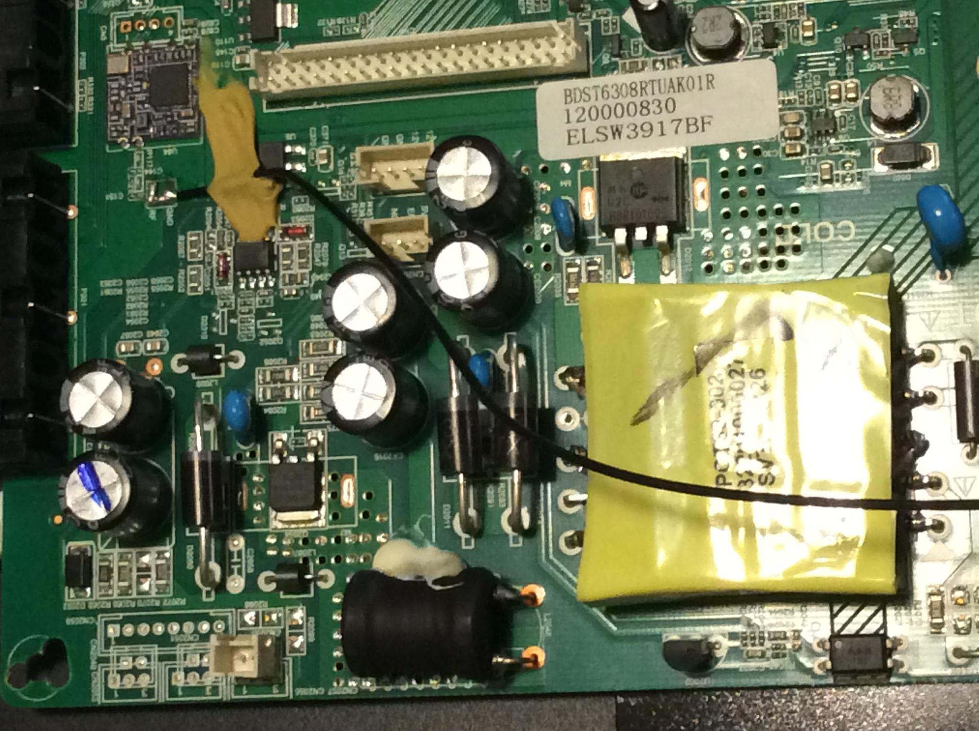 The original problem was that when switching on the TV, the power LED was transitioning from red to steady blue, without showing video or audio.