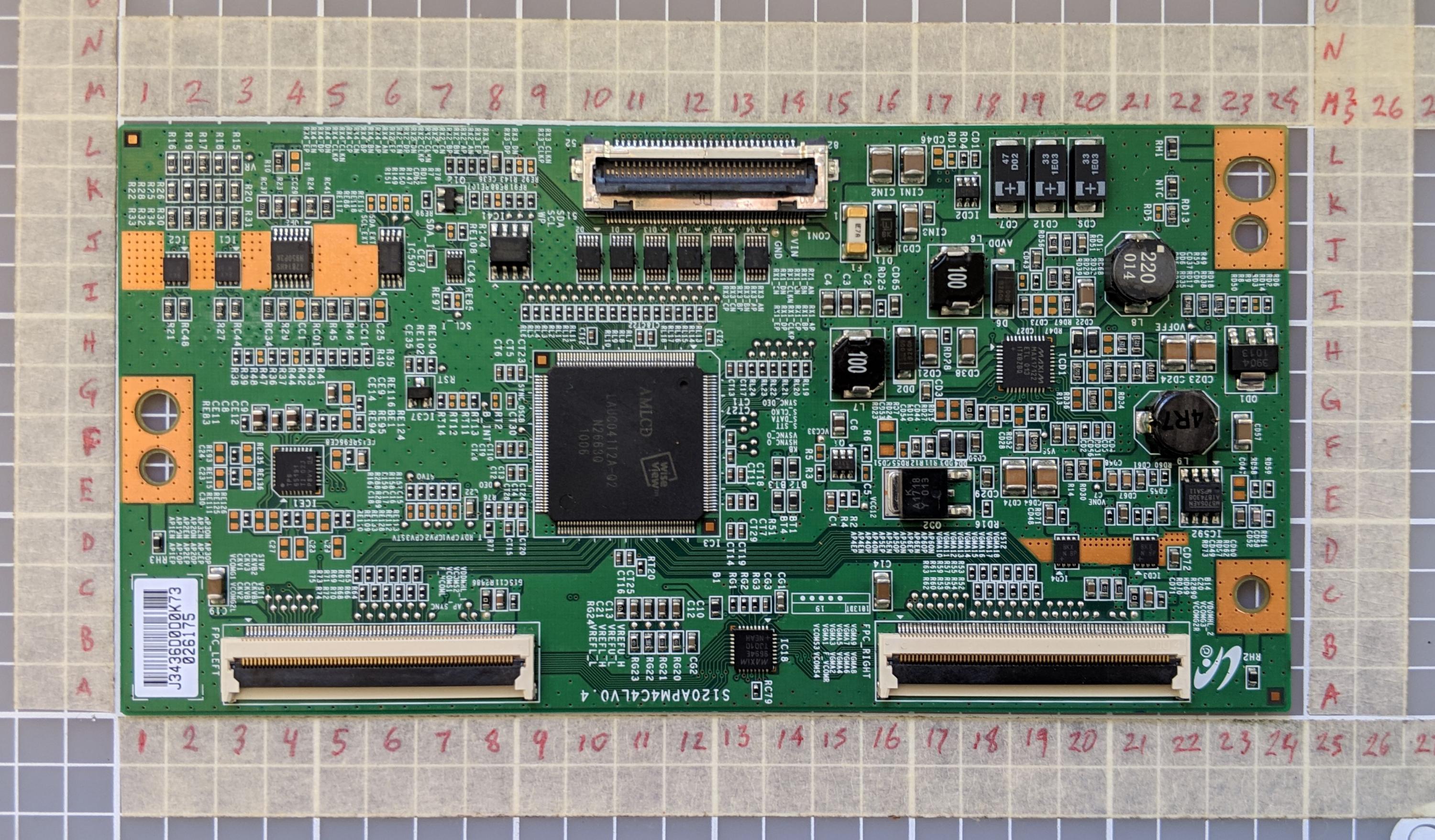 I tested both sides of the T-CON board fuse (white, with gold tips, and it measures 12.46 Volts