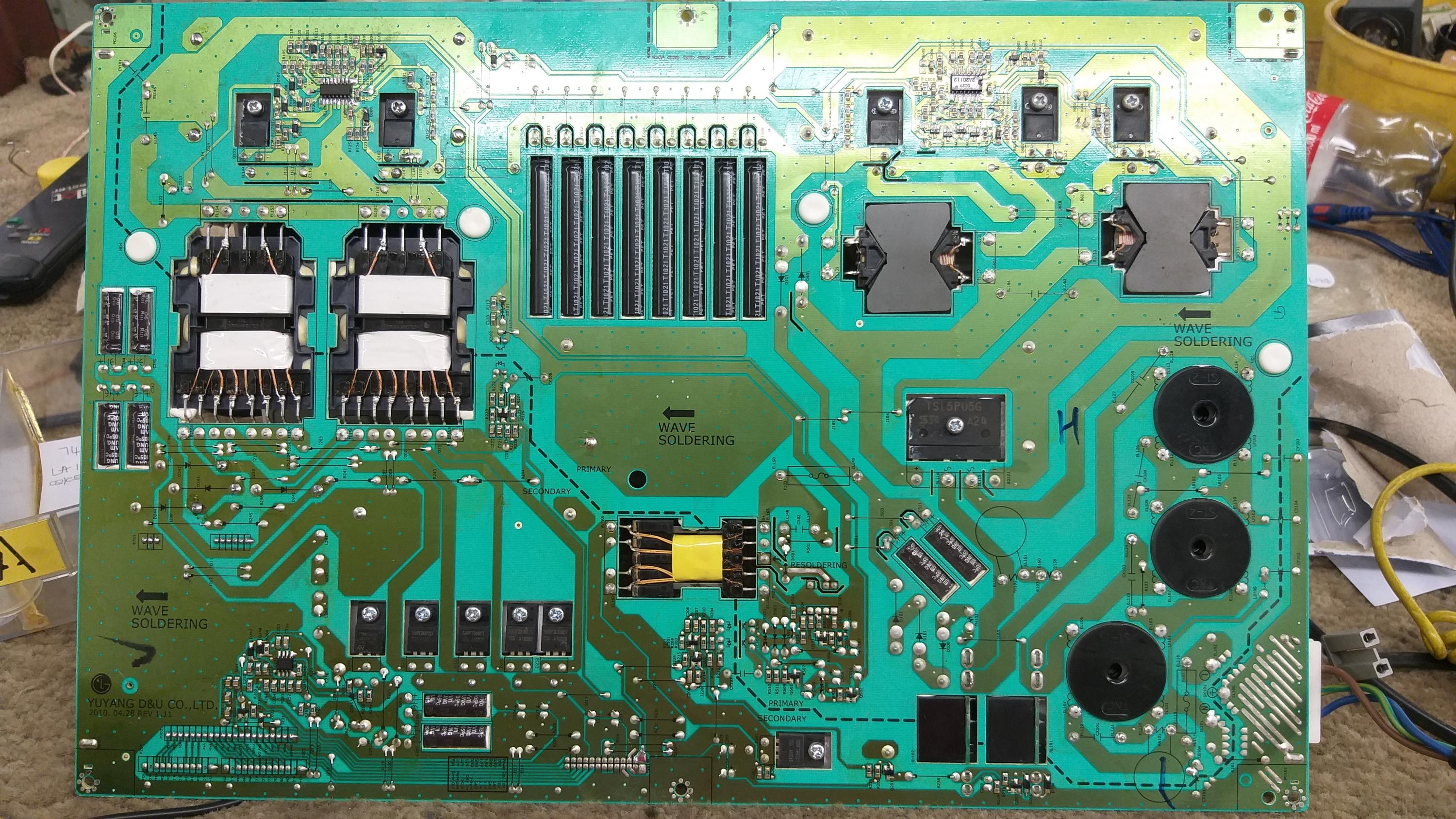 2. The power supply section responsible to generate the secondary voltages is operated by a L6599D. I scoped the gate drive pulses on switch on and i could briefly see some square waves but it shut down.