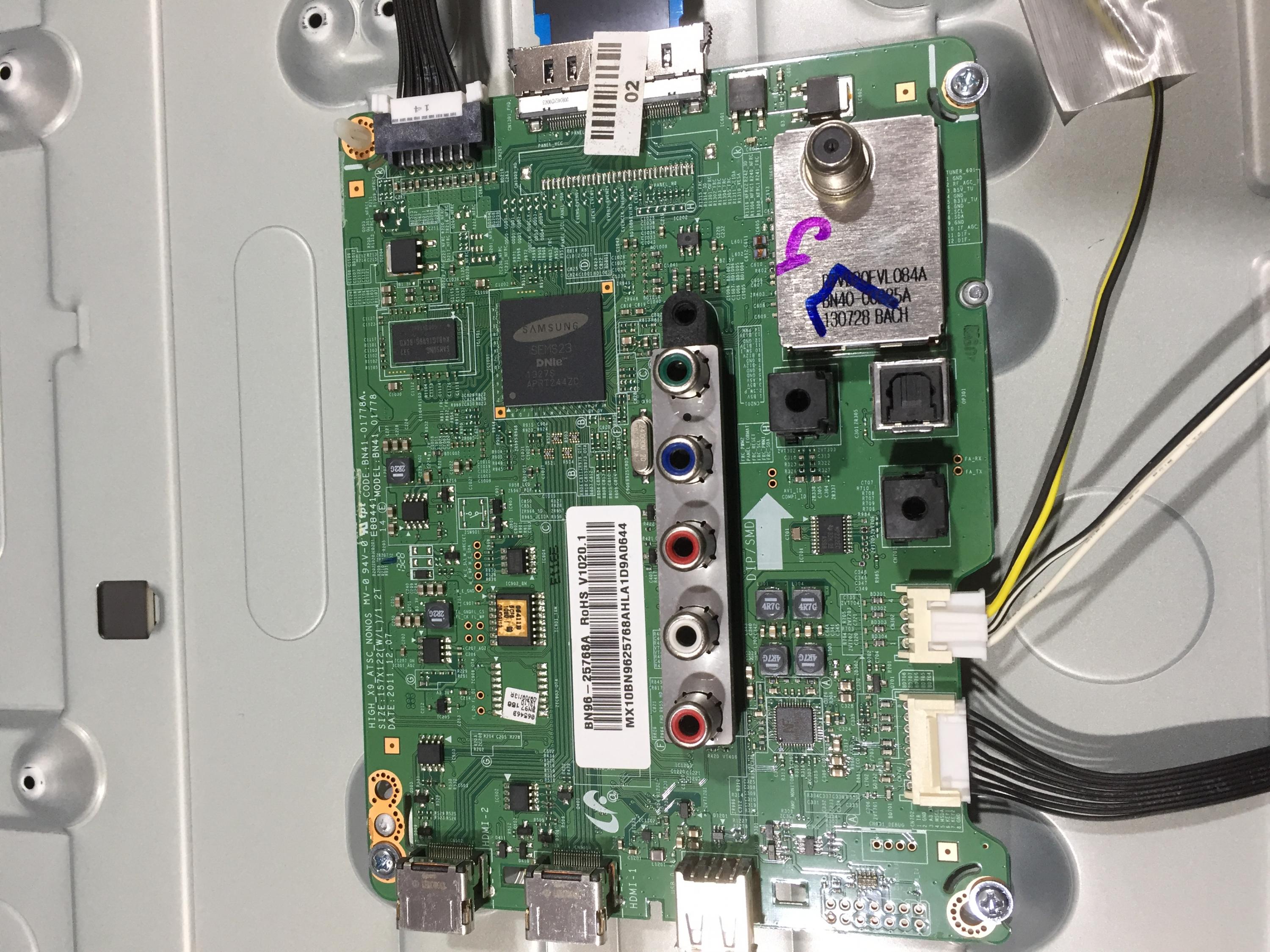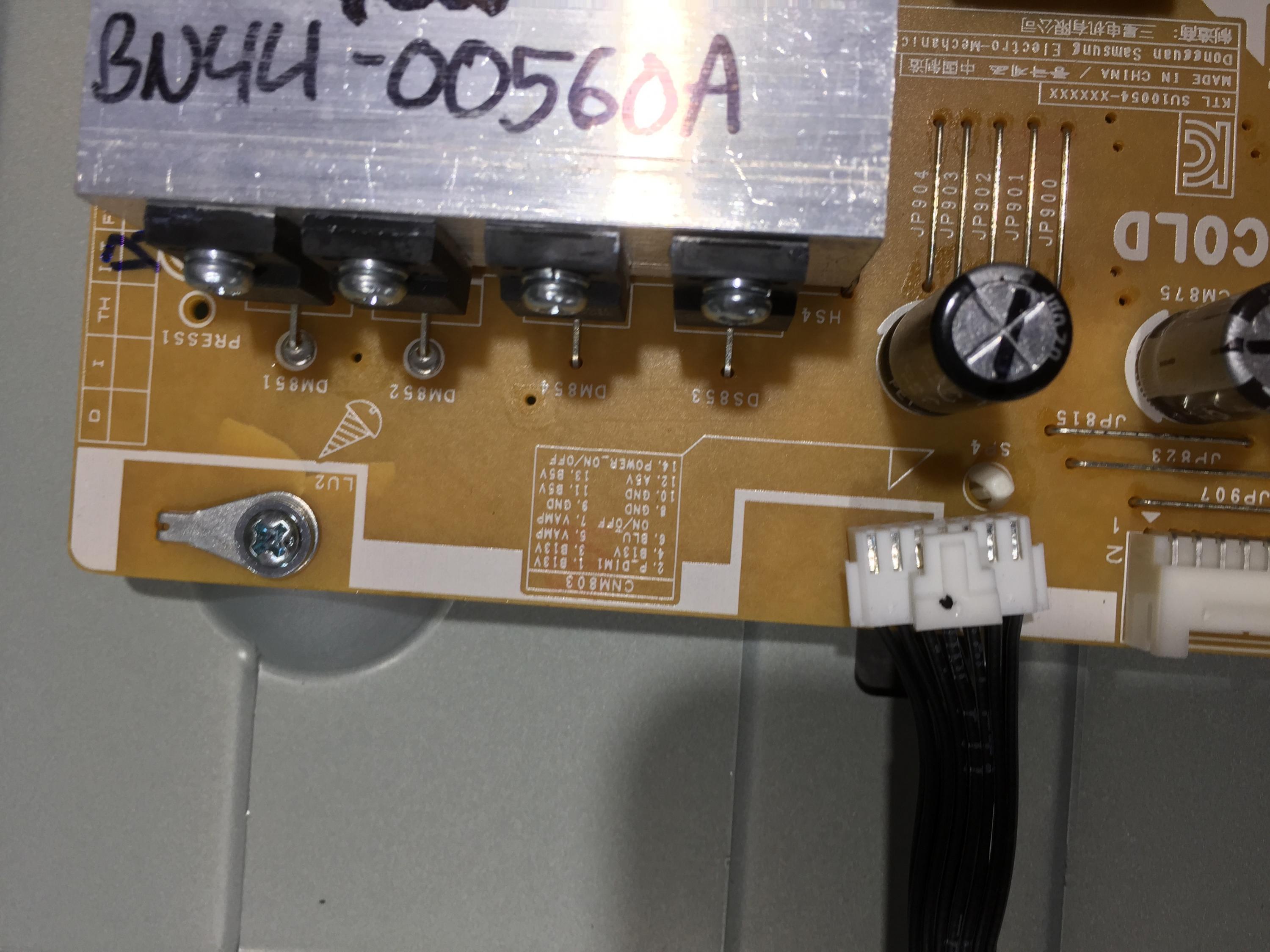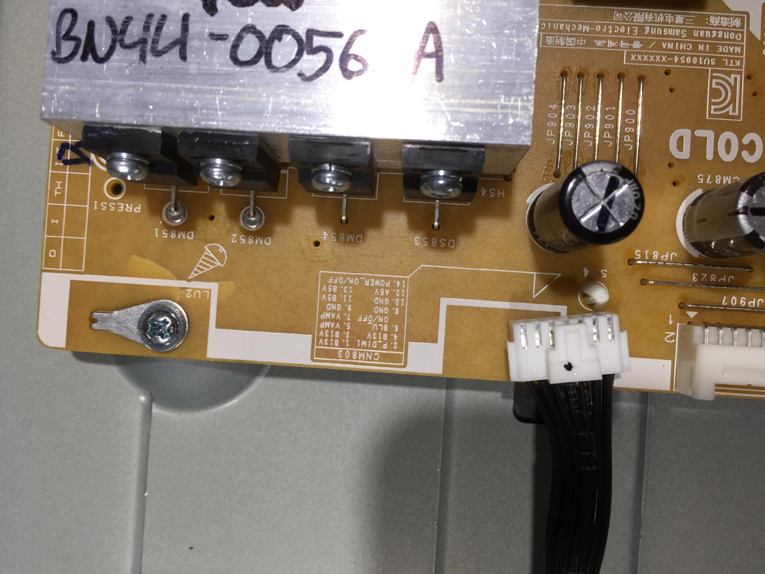 I checked this unit out which is actually my own tv and the only voltages on cnm803 is 5vdc on 13 and 3.4 on 14.The power supply is new or as far as i know its new.Cant get lamps to fire up but i did do a tear down and all lamps tested ok.All around 58-59vdc on my lamp tester.The power supply did come with an apparent crack around the screw hole but no trace damage.