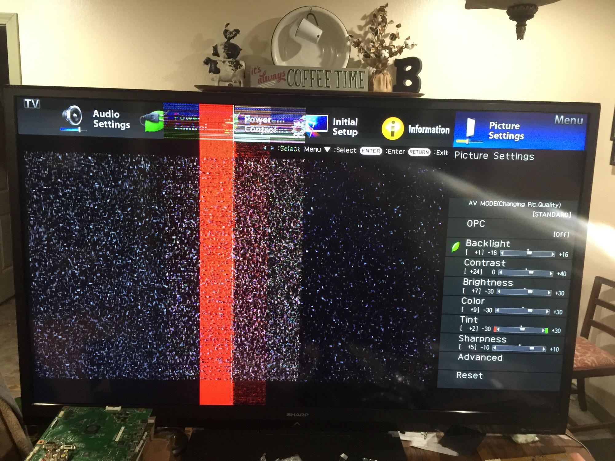 Press and hold the "Channel Down" and "Input" buttons on the panel.
