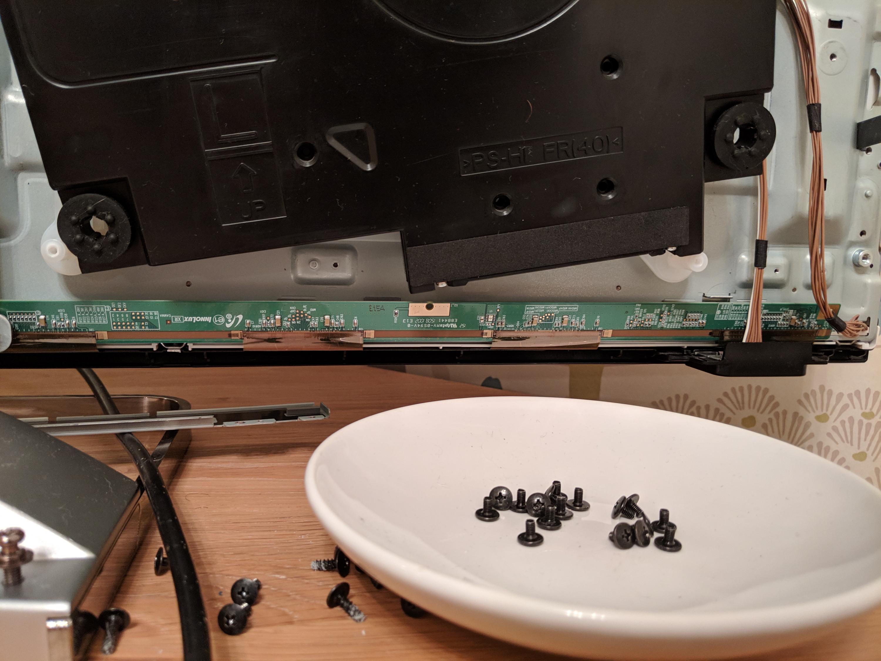 So today a new Tcon board arrived and away I went and changed it. When it first booted up I got a picture looked fine, happy days. Then it went to some vertical lines before disappearing but then the picture came back albeit being very dull and not looking great.