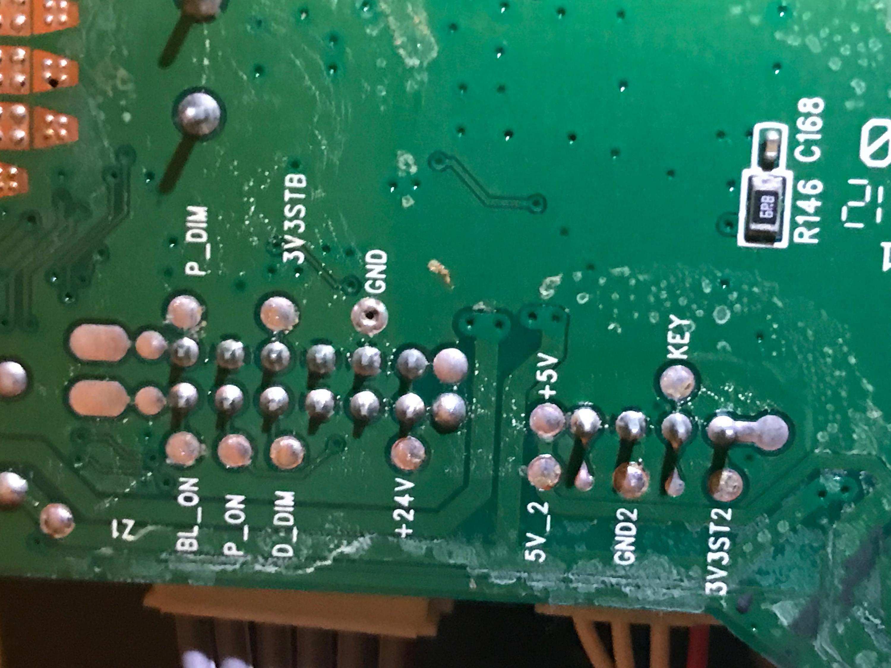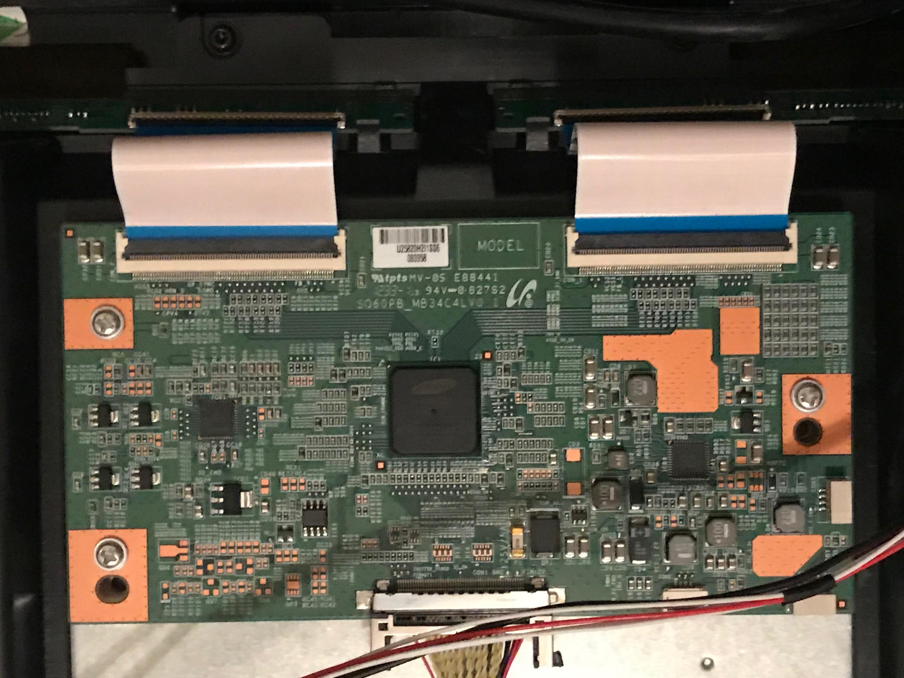 I've also tried disconnecting the left - then the right t-con connector - again, power light will come on; then when pressing power button the light goes off - nothing appears on the screen.