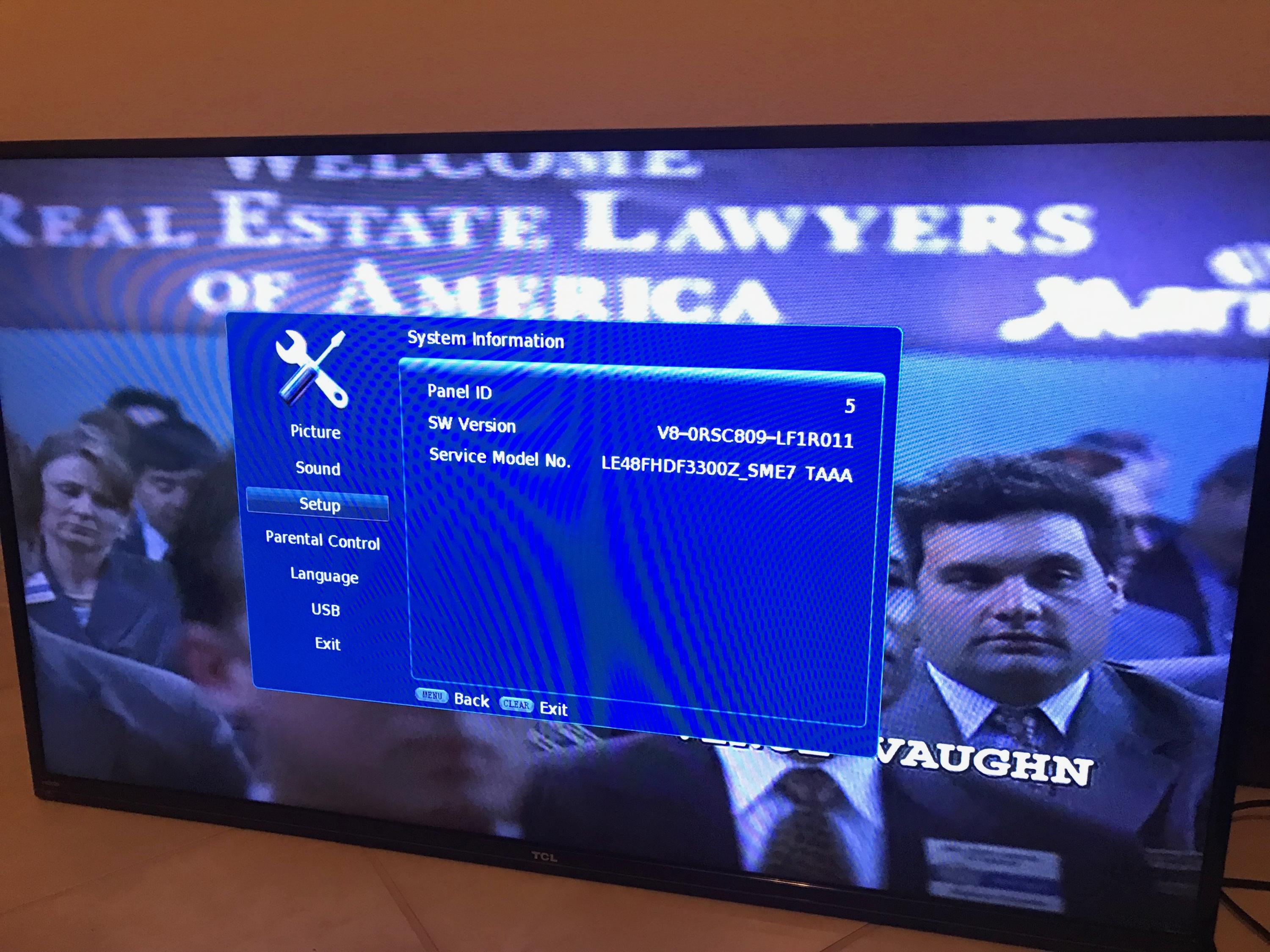 Picked up a TCL LE48FHDF3300Z - when plugging in I see the power light on the front come on. When turning on the power either with remote or power button, the light goes out - don't see anything on the screen.
