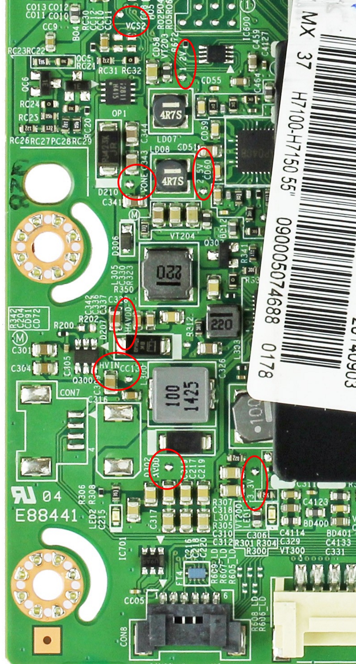 There are many test points on the T-CON, some may be under the heatsink too.