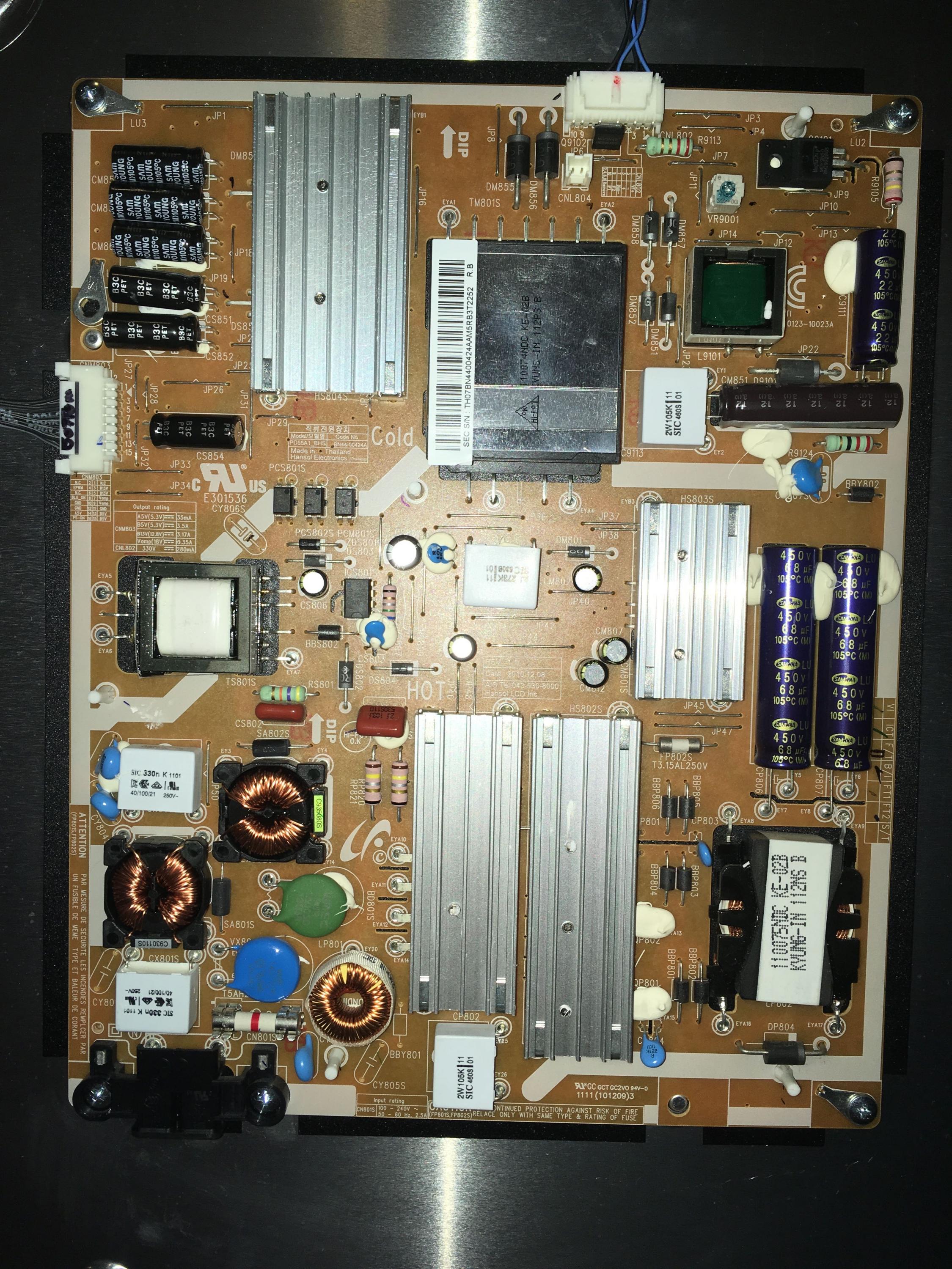 Fixed it with LED replacements, and worked for a few minutes, and then I got a stun-gun type of pop, yet I thought some electrolytic cap popped, but the connection to one of the LED strips was having a high-voltage leak, and sorting to the aluminum frame of the TV.