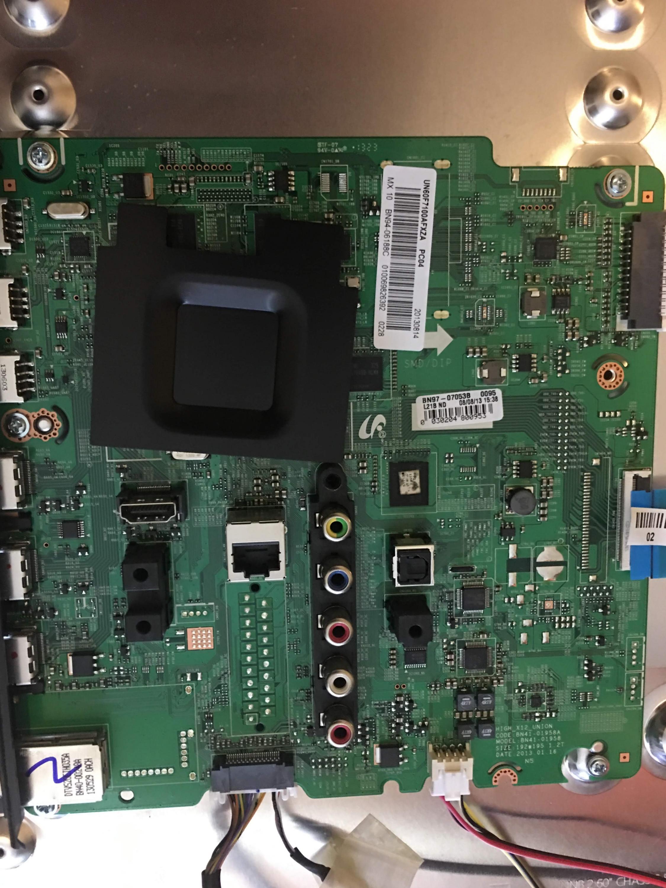 I have a Samsung UN60F7100AFXZA it is just clicking and not turning on fully, the standby light blinks 5 times then the power relay clicks and starts the whole process over. I get steady 5VDC on pin 22(I believe to be the stby) on the cable that connects the logic board. the other pins match the board markings when I try to turn the tv on. the power relay carries 5V when closed on the small legs, the capacitors appear ok and read at or above rated capacitance except for the one circled on power board image, which will show as a short then 70microF. Not sure what the capacitor is cannot find any ratings on it.