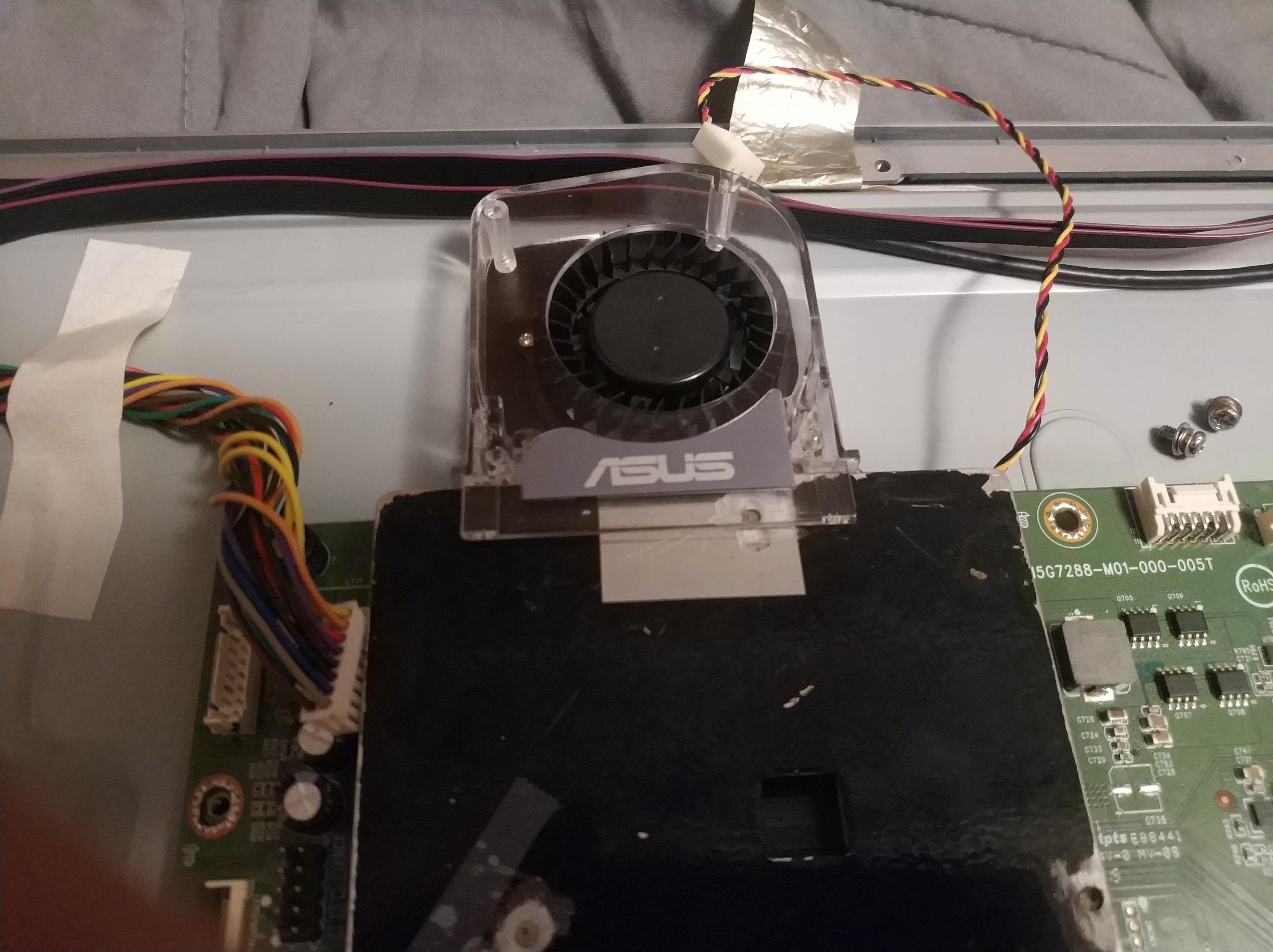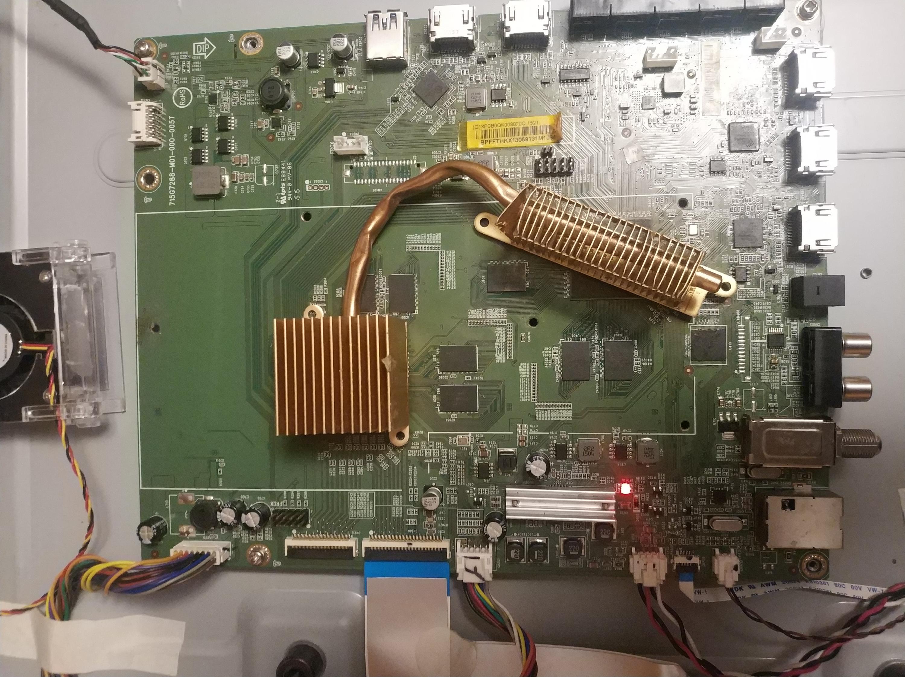 I checked the t-con board. It is getting good power. Then I removed one ribbon cable to see if I could isolate...