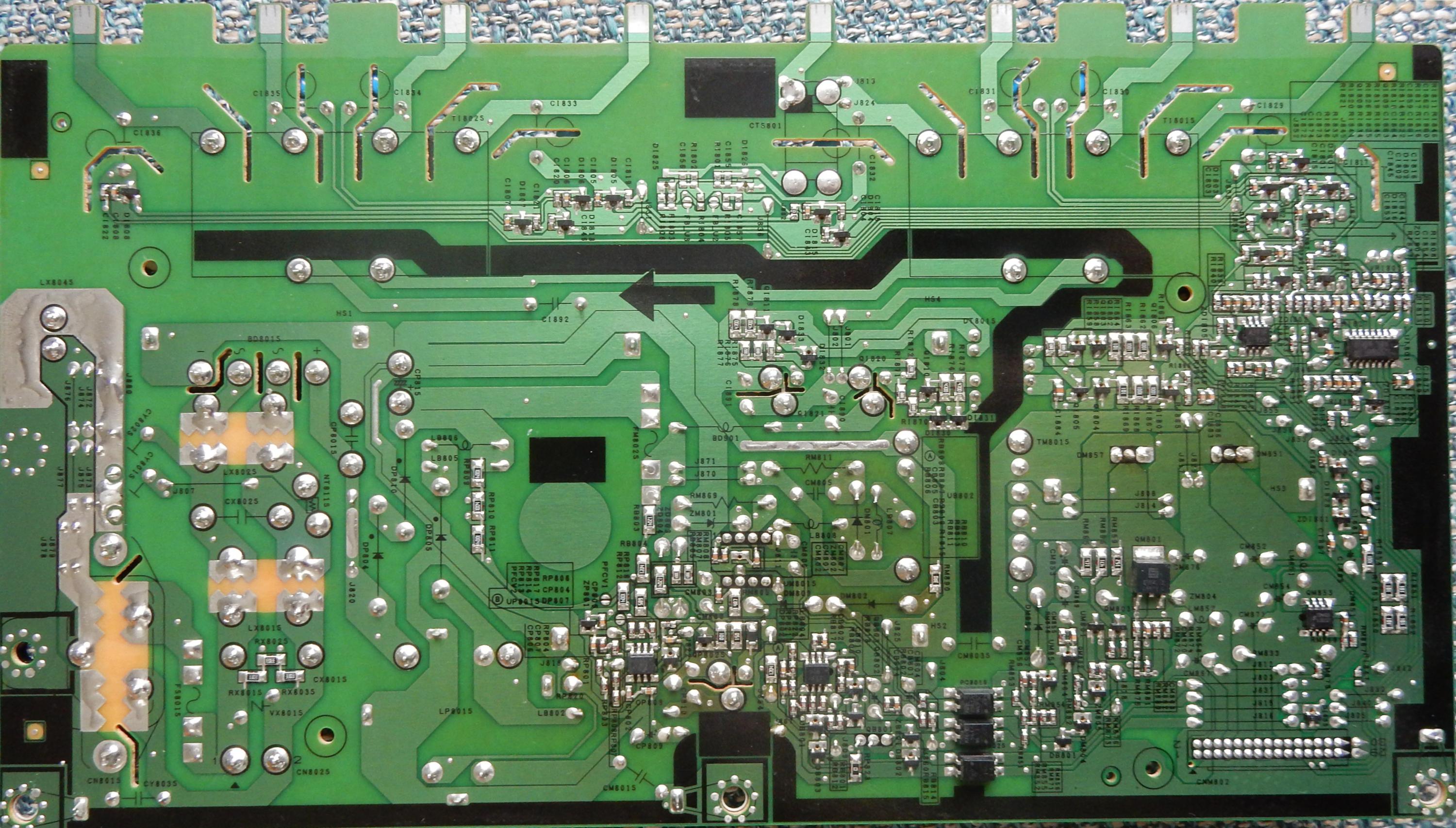 I assume the issue is on the power supply/inverter board, so am posting a picture of that. There are two rows of connectors, but only the bottom (Closest to the board edge) are used. Voltages compared to the case metal are (Measured in DC mode in the 20V range) from the other board as it is easier: