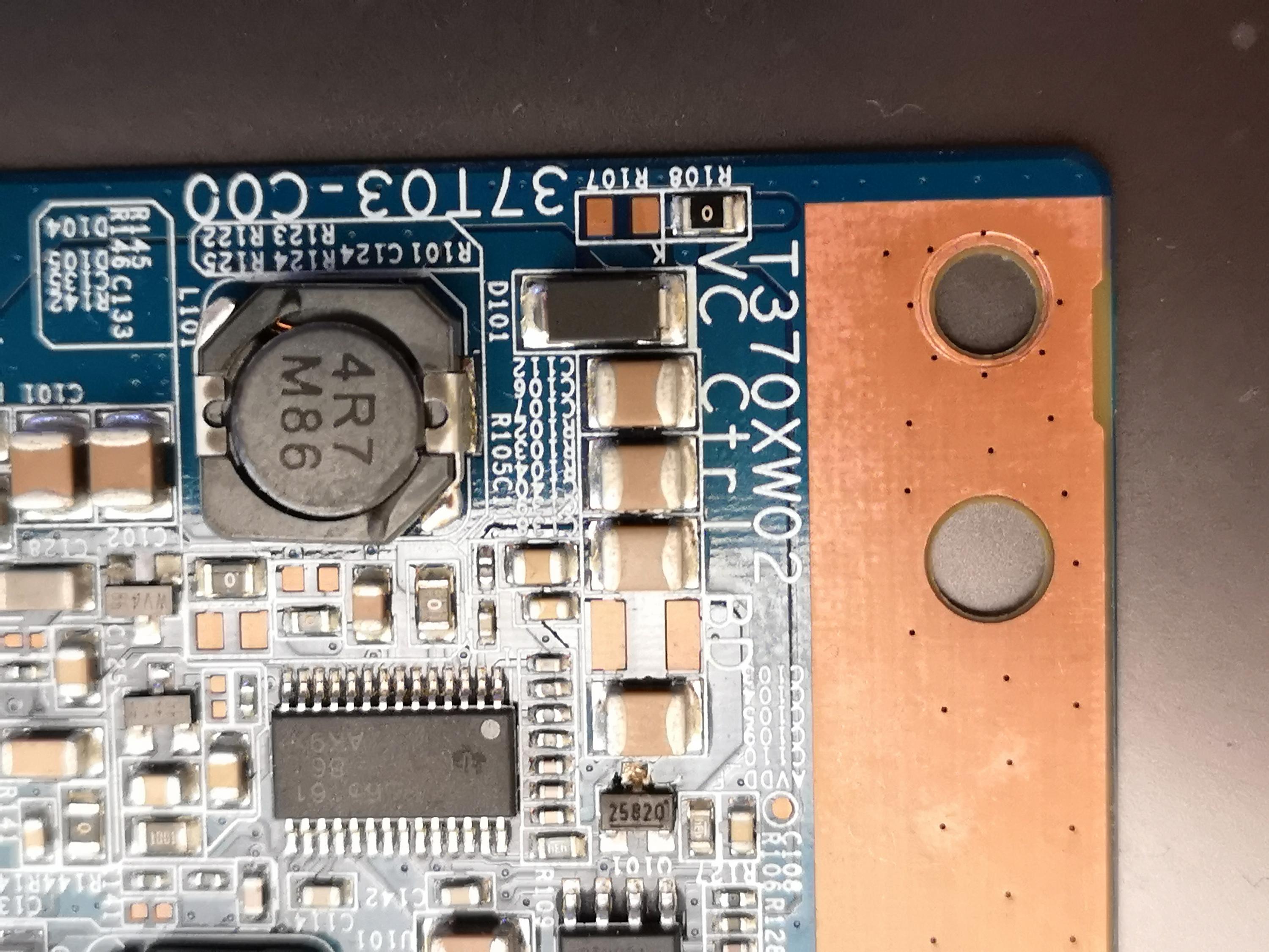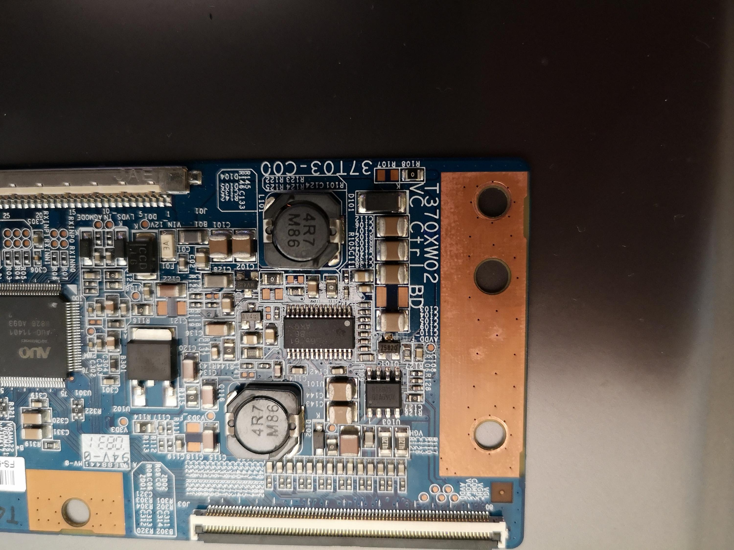 But then where I had tightened up the screws (I normally work on motor bikes.) and flexed the TCON board, the chip litterally popped off. (Obviously wasn't on there great.)