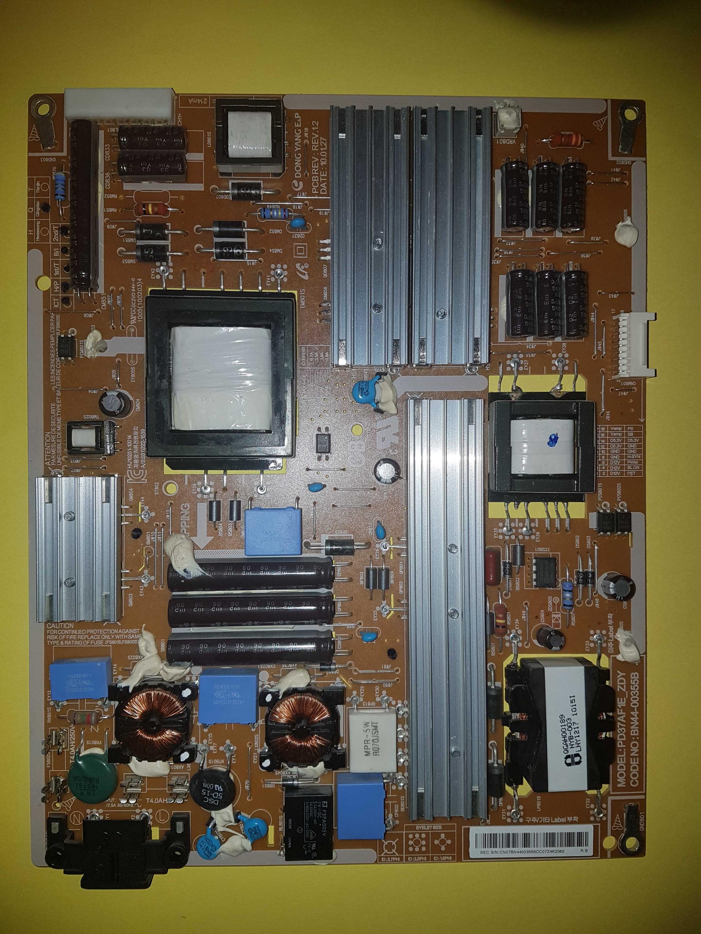 Hey guys, my Samsung LED TV UE37C6000 went black a few days ago. I found out that the 2 fuses of the power supply board PD37AF1E_ZDY were blown. I got new ones and both immediately blew again when I plugged the TV in.
