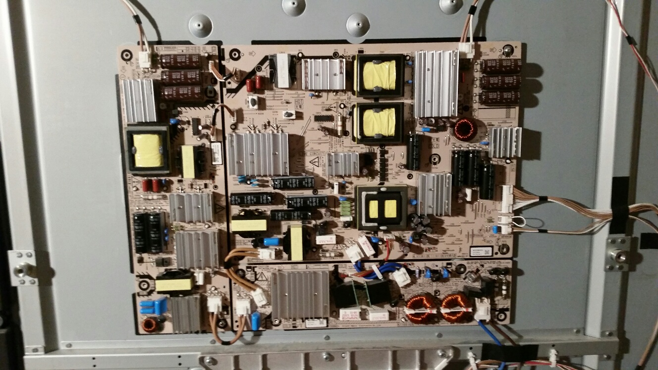 A friend of mine experienced a power surge that damaged his Panasonic Viera TC-P65VT30 Plasma Television. The symptoms are no signs of power and no blinking LED code nor is the LED lit. After taking off the back, I inspected the boards and performed the testing advised on pages 25-27 of the Service Guide for Panasonic Plasma TVs. In ohming out each of the pins on the SS, SC and A boards I didnt find a short circuit to GND. I made these