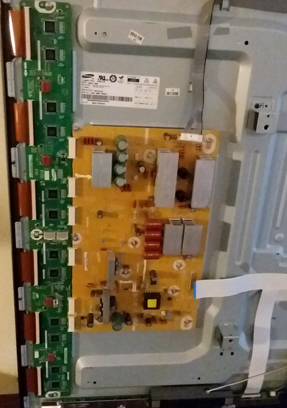 On a Coppell U-Tube, They were working on a 64” version of this model number, and he left the boards connect from the PS but disconnected the ribbon between Ymain and control/main, to confirm fault on Y main. (My guess is those models didn't have Y main and X main daisy chained, so maybe it isolated Y main?)