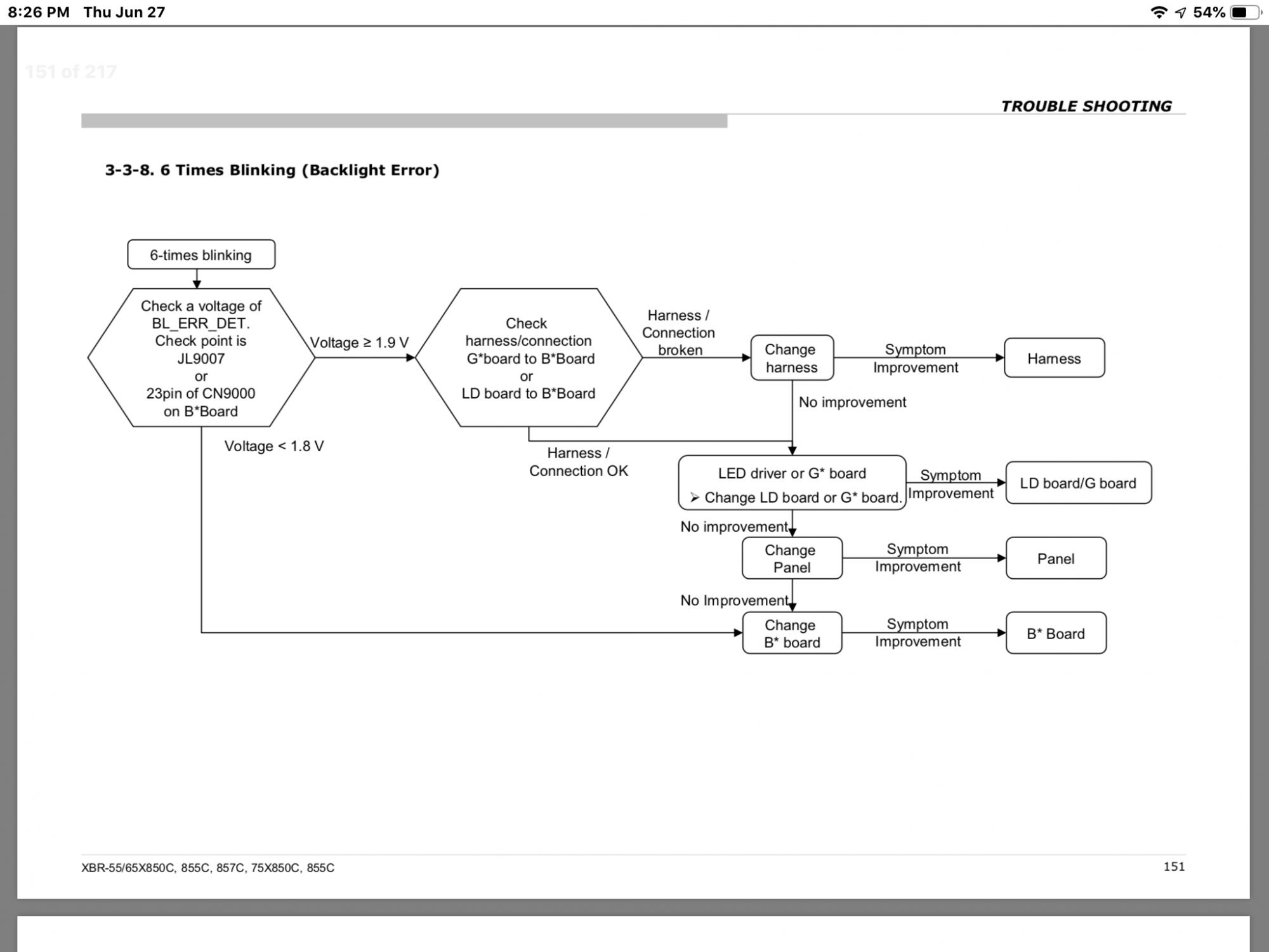Hi i have the 65 inch version sony bravia with 6 blinking lights , back light error.....