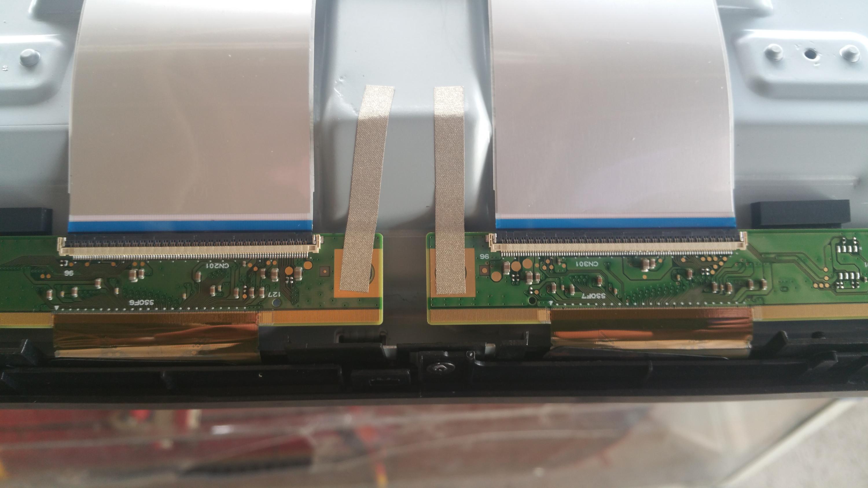 The "tab bond" boards attached to the display panel look immaculate.. No obvious burns or shorts.. The tab bonds themselves look in great shape.. No rips or burns or holes/cuts...