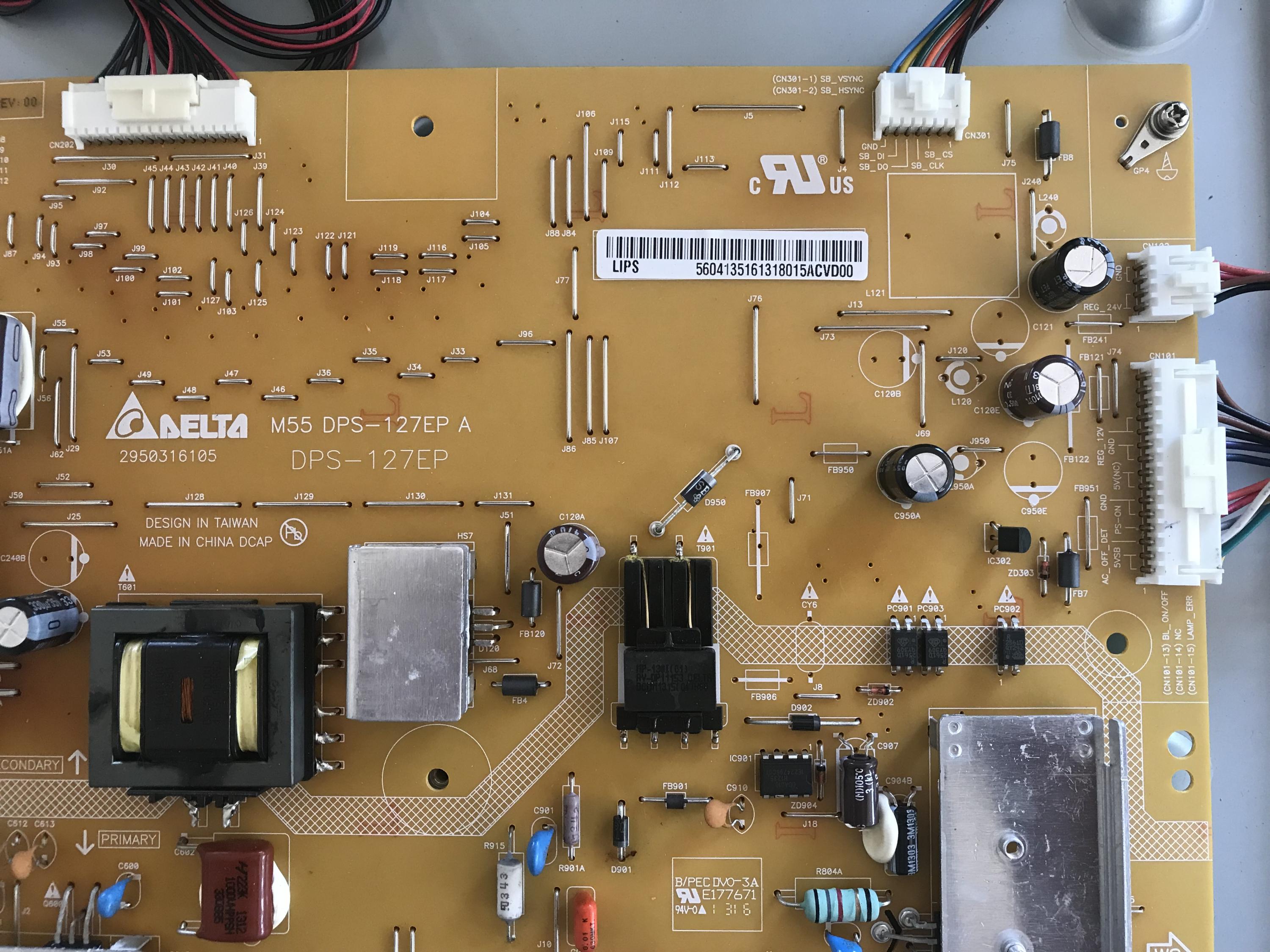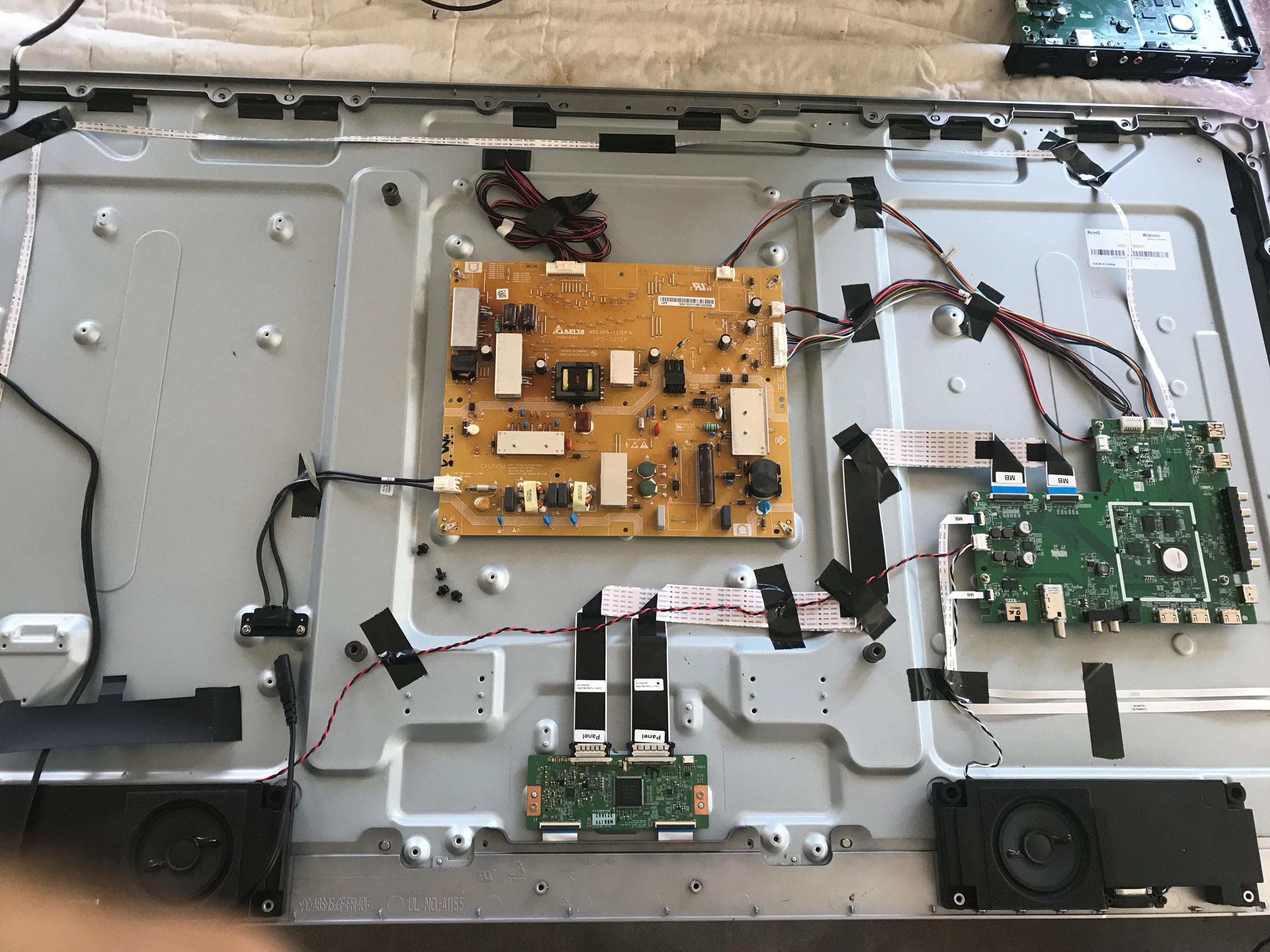 by ggil44Hi I inherited a Vizio M65-E0 that isn't working. It must have been dropped on the corner because I found that the infrared circuit had a capacitor with one end broken off of the board and some green corrosion around the plug to the main board. I re-soldered the capacitor and cleaned the corrosion well and tried turning the M65-E0 on and I was successful. My problem is that while the back lights come on and appear to perform local dimming there is no picture or sound. It kind of looks like you are looking at the TV through a very dense fog, where changing the input on the remote will change bright...