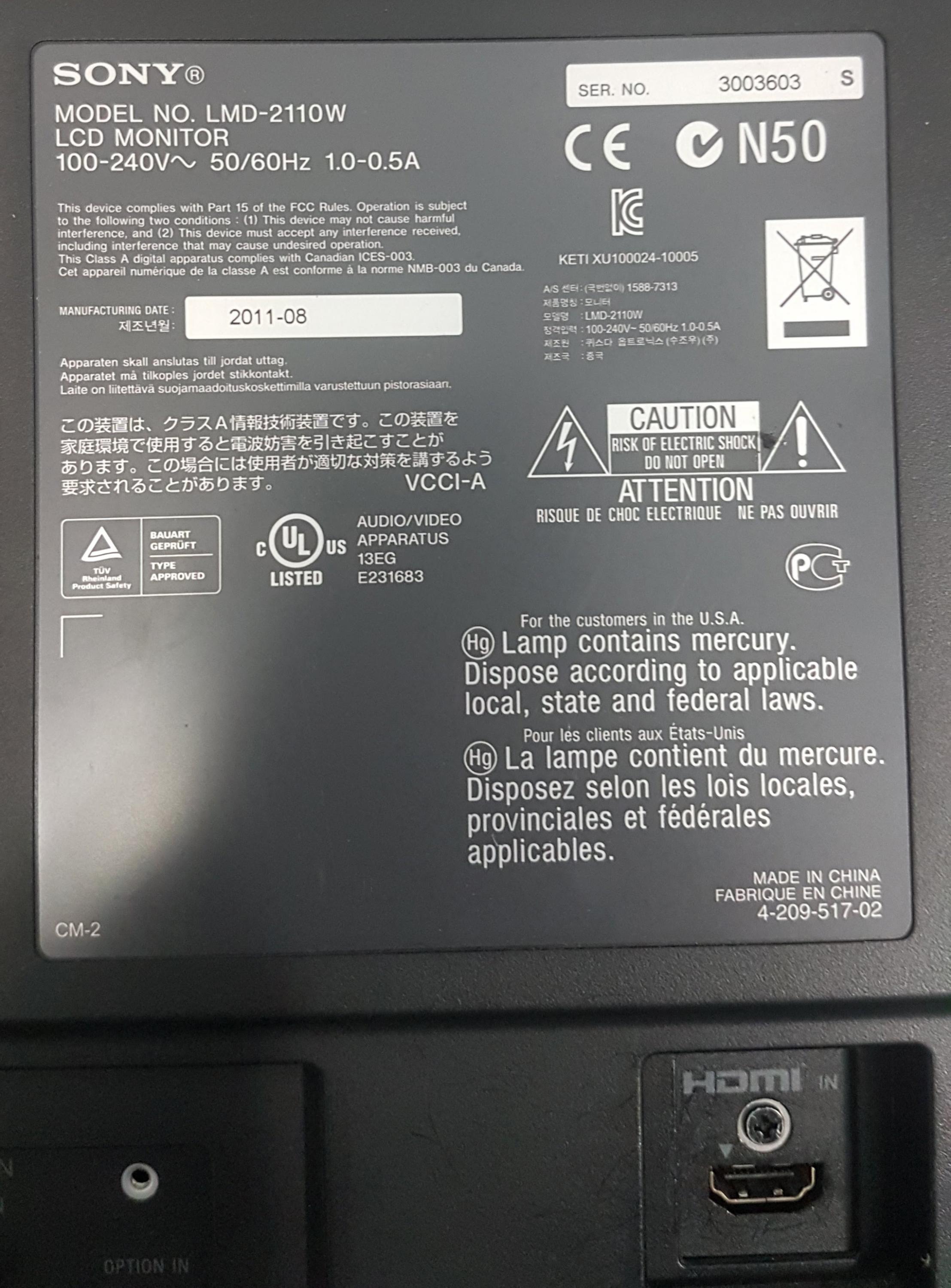I would very much appreciate any help or guidance with attempting to repair this Sony LMD-2110W LCD broadcast monitor.