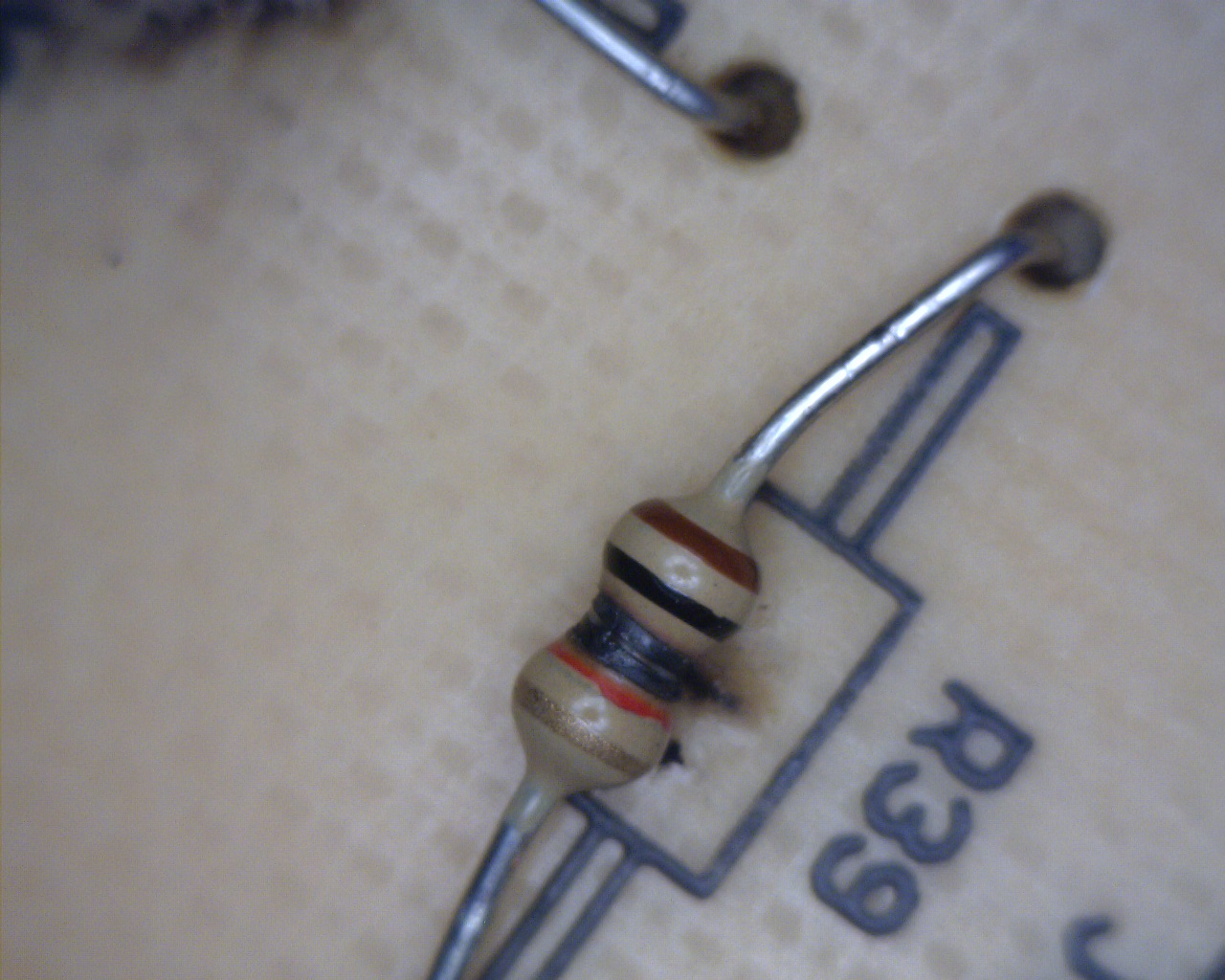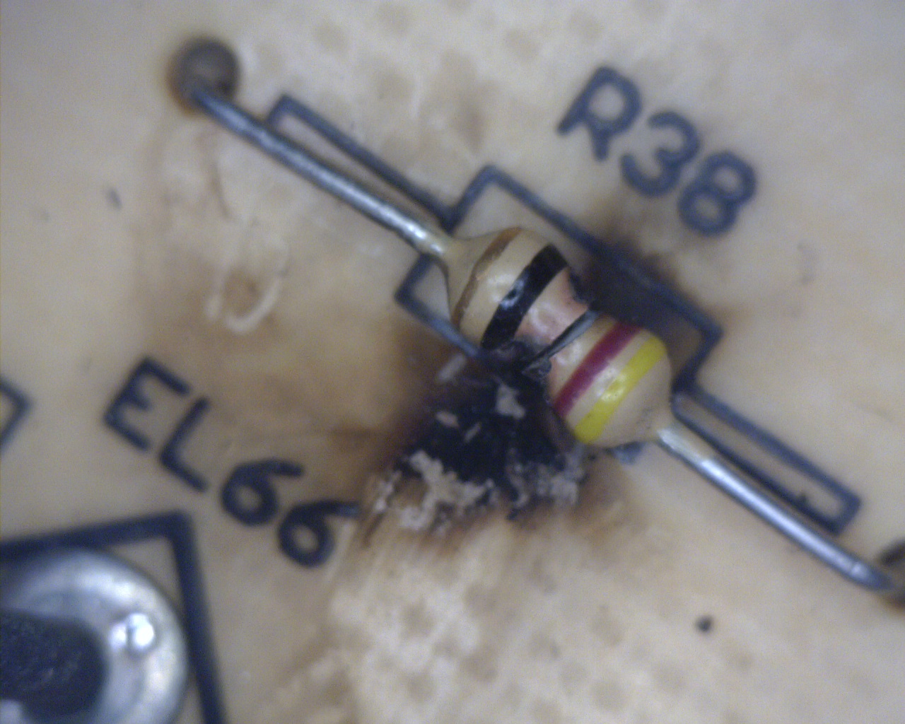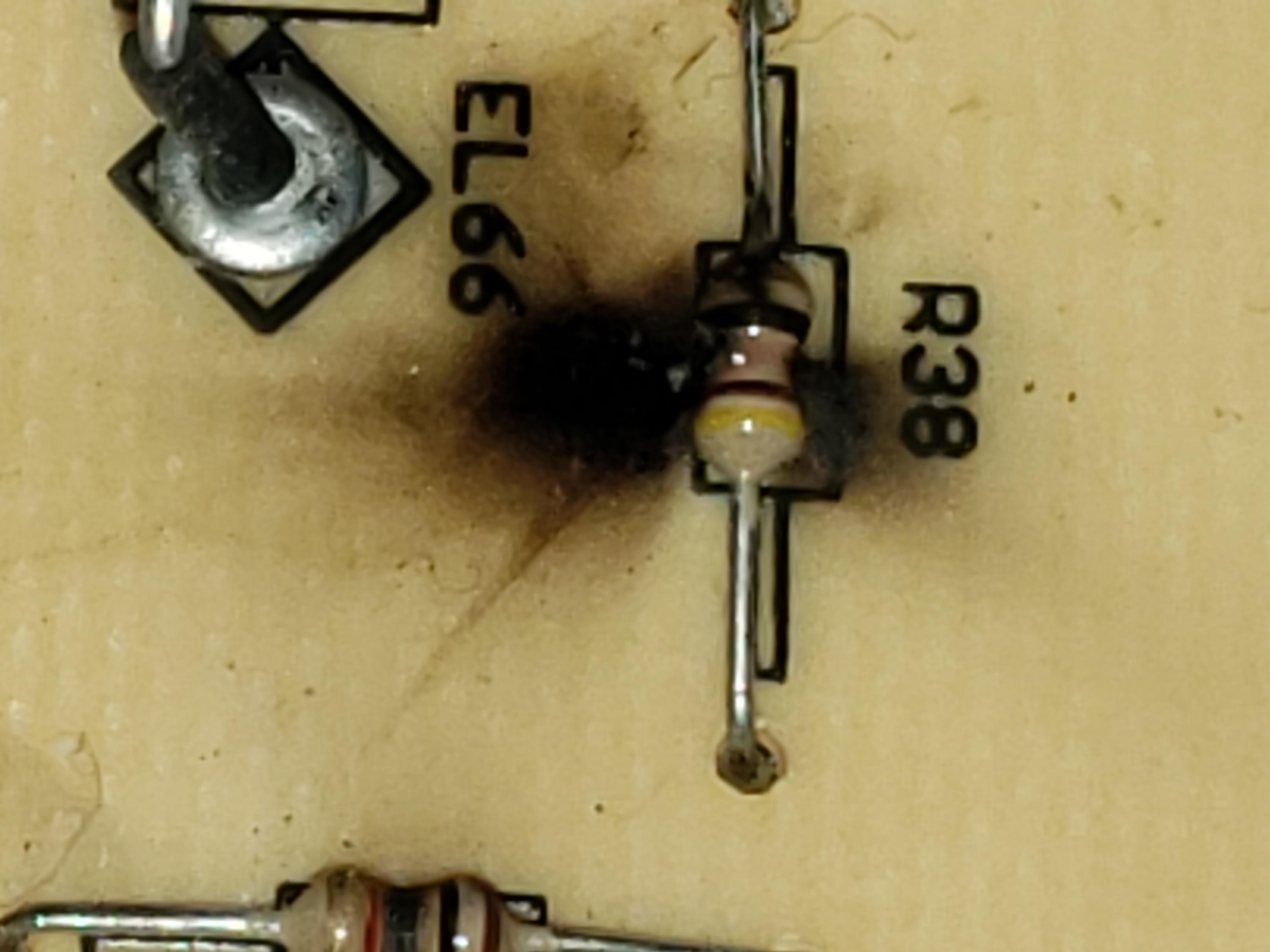 Any thoughts on how to repair this? Anyone with a schematic that can help me troubleshoot this board? Replacing the Transistor would fix it? I don't know the value of the R38, but it's reading 635 kOhm