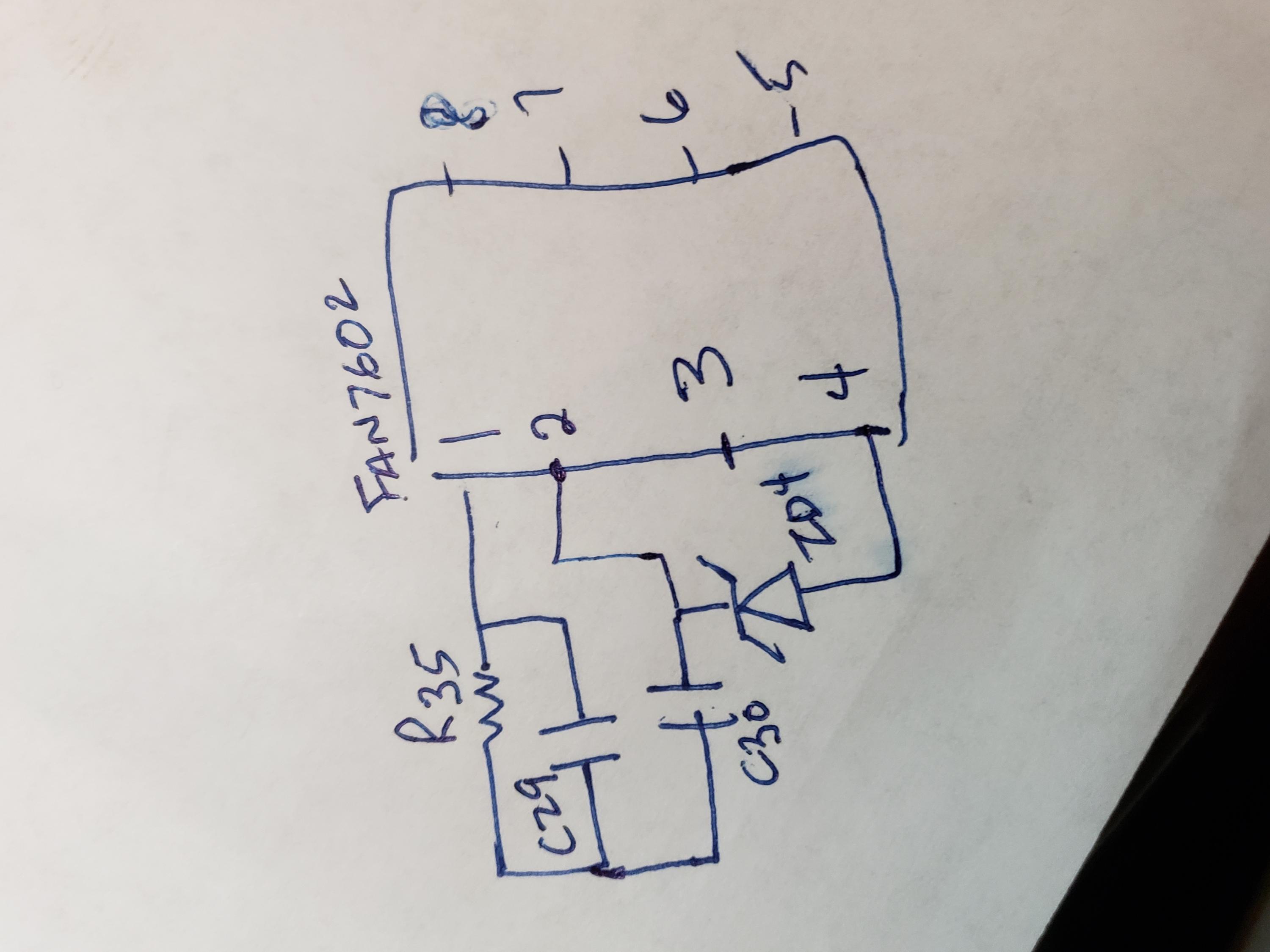 Circuit looks different than the datasheet for that fairchild part. Trying to identify type of Diodes and resistor values.. any help is much appreciated.