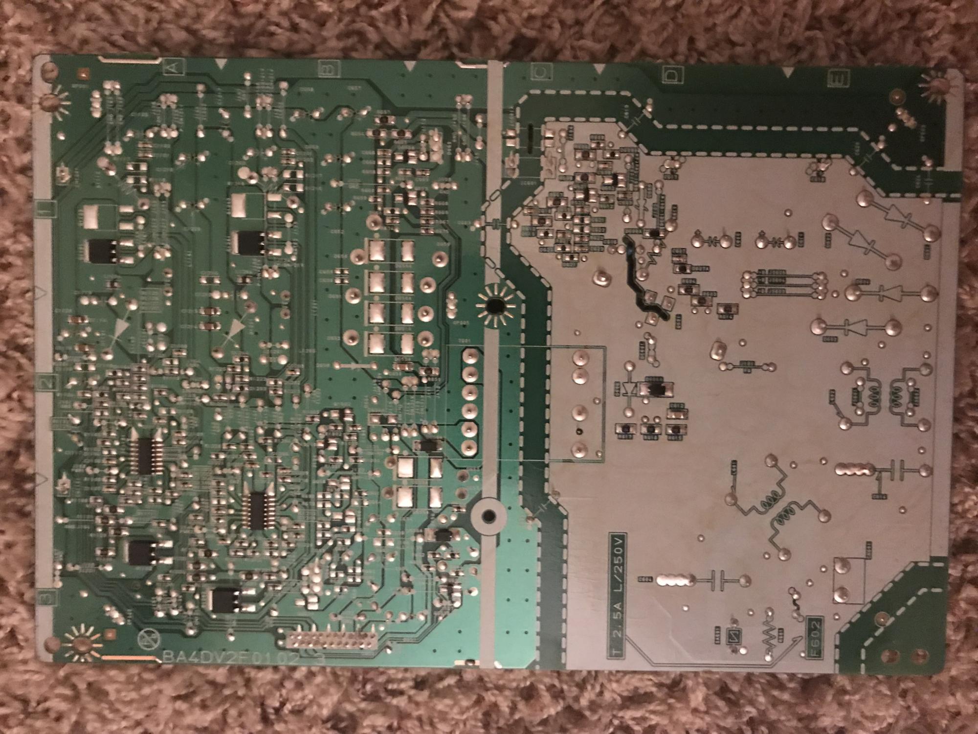 I did also test the F602 fuse (not isolated from the board) and it ohms out good. No leaking or bulging capacitors.