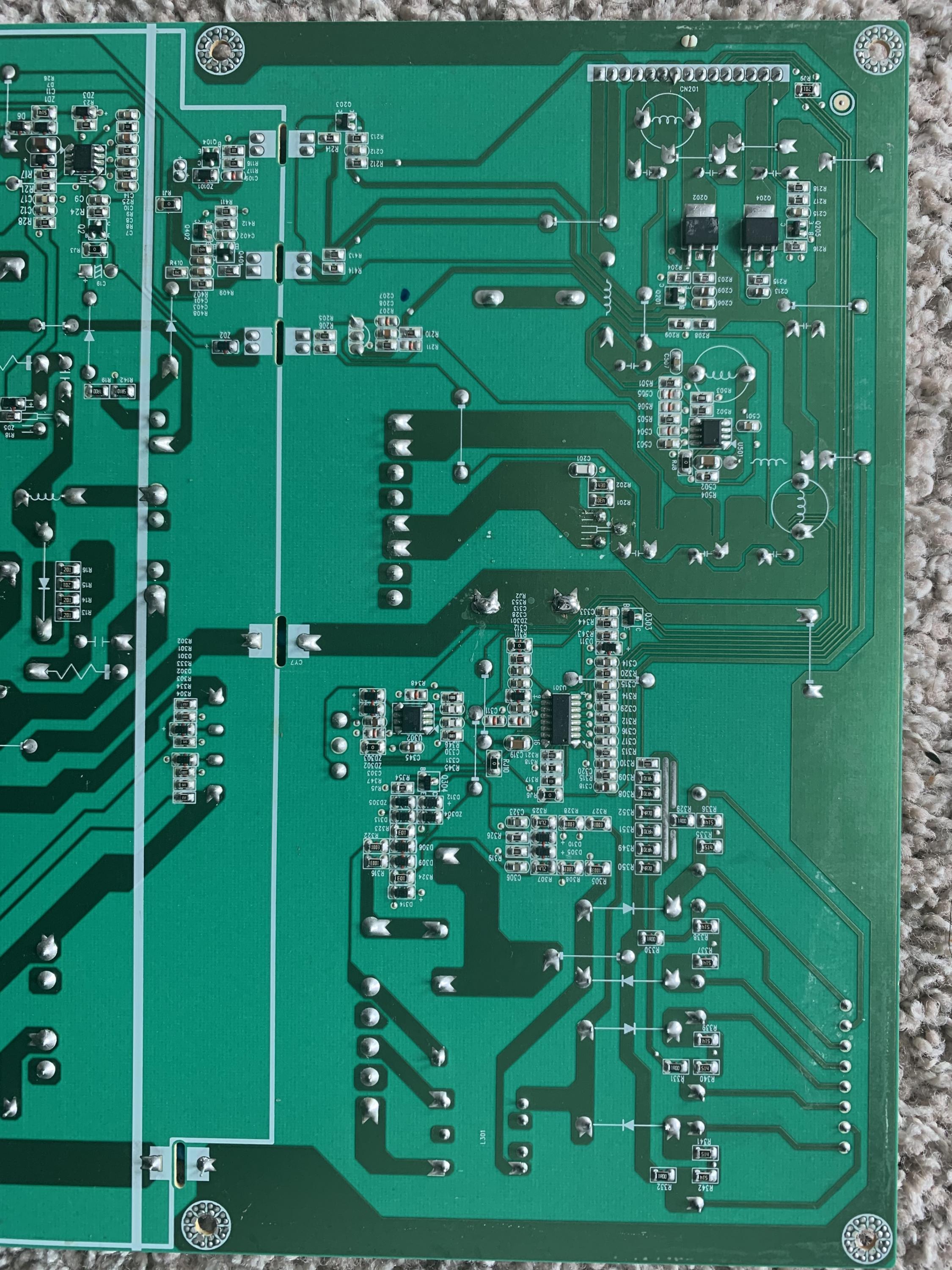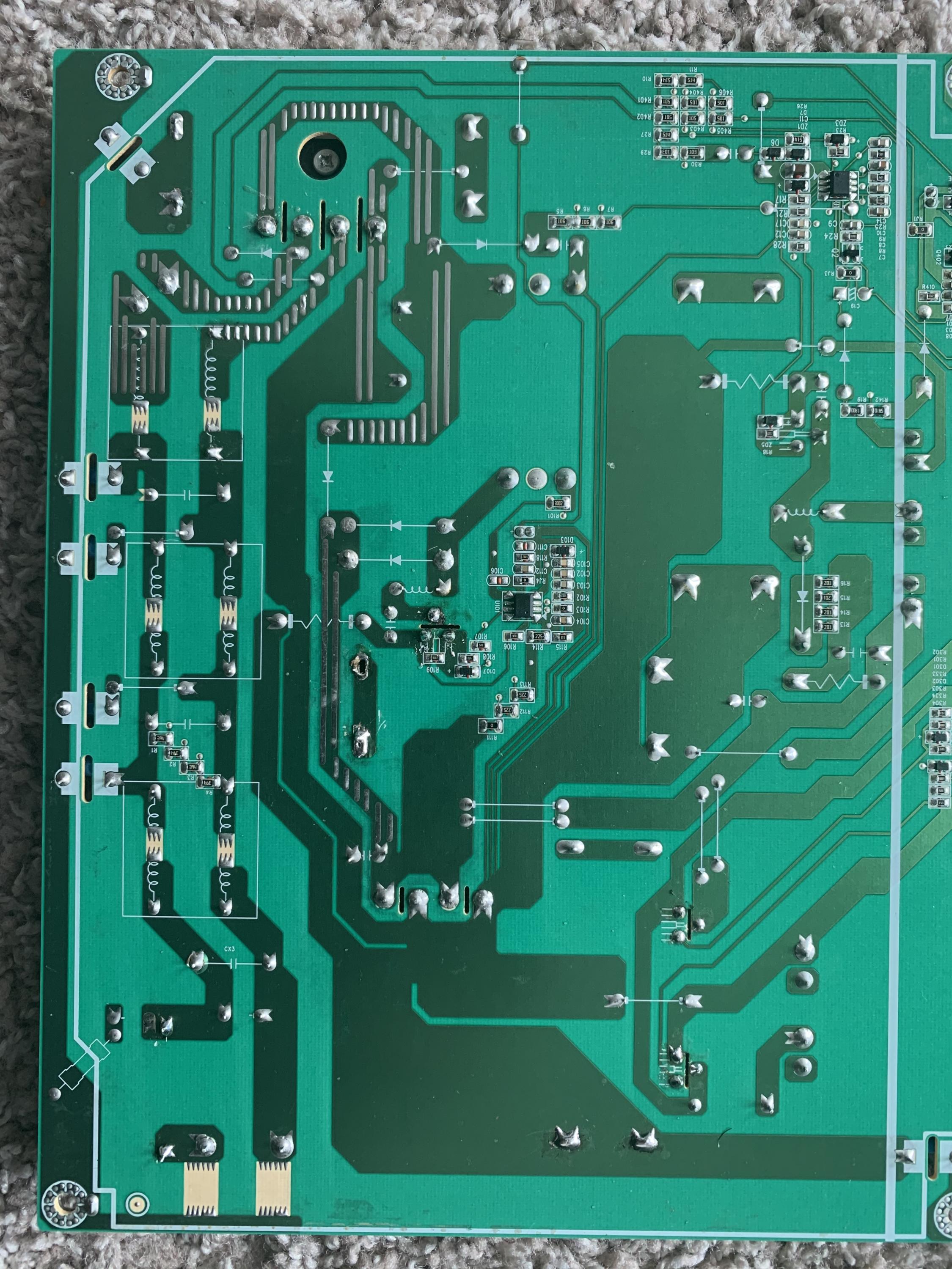 I have this Vizio 60" E601i-A3 with no power on issue. After I opened the tv, found out the fuse was blown. Replaced the fuse and blown again. Checked all the mofsets and found out the Q103 (FDPF16N50) was shorted. Replaced the mofset, without the mainboard connected, had 3.3v on first pin on CN201. But when I connected just the mainboard back again, the fuse and mofset went bad again. Thought it's a bad mainboard, so I replaced the mofset again, with no mainboard connected, shorted the PS_ON to ground and boom, same problem, fuse and mofset went bad again. I don't want to blow that mofset again because I just only have one more good mofset. Any idea what's the problem and where to start to diagnose the board?