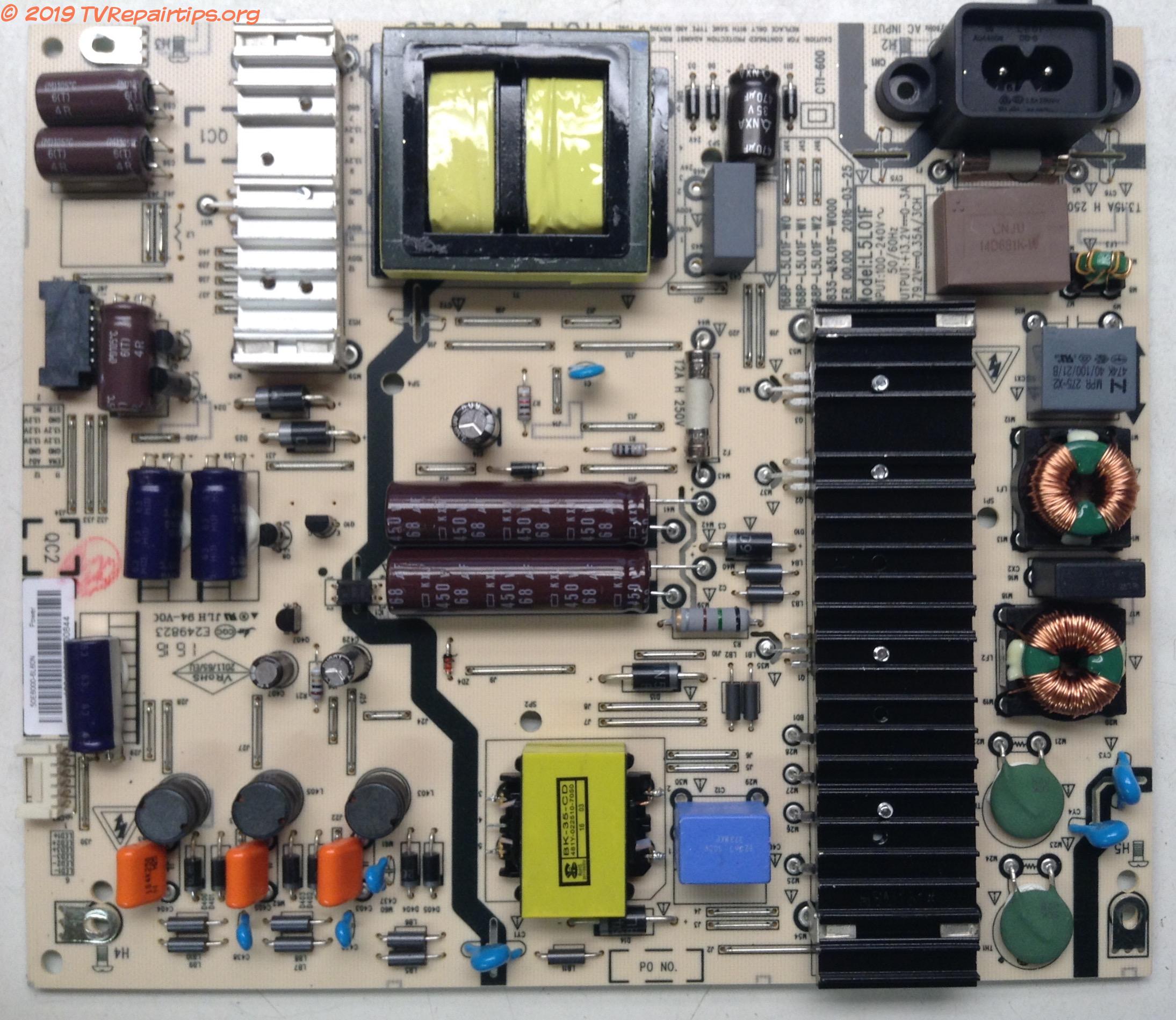 Picture is too blur to read anything on the board. How about the pictures of the whole top and bottom side of YOUR power board and the whole backside of the TV showing all the boards?