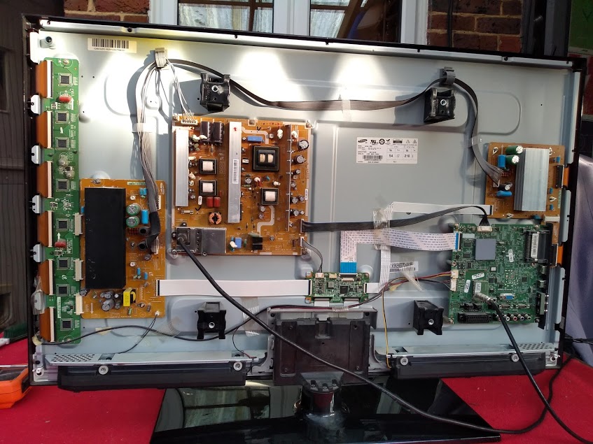 I'm just starting to look at this 7 year old Samsung PS42C450B1W that, on first power up the picture is fine. Then, after a few minutes, the picture becomes distorted with highlight noise and solarization effects. This is present on tuned images along with USB sourced video files.