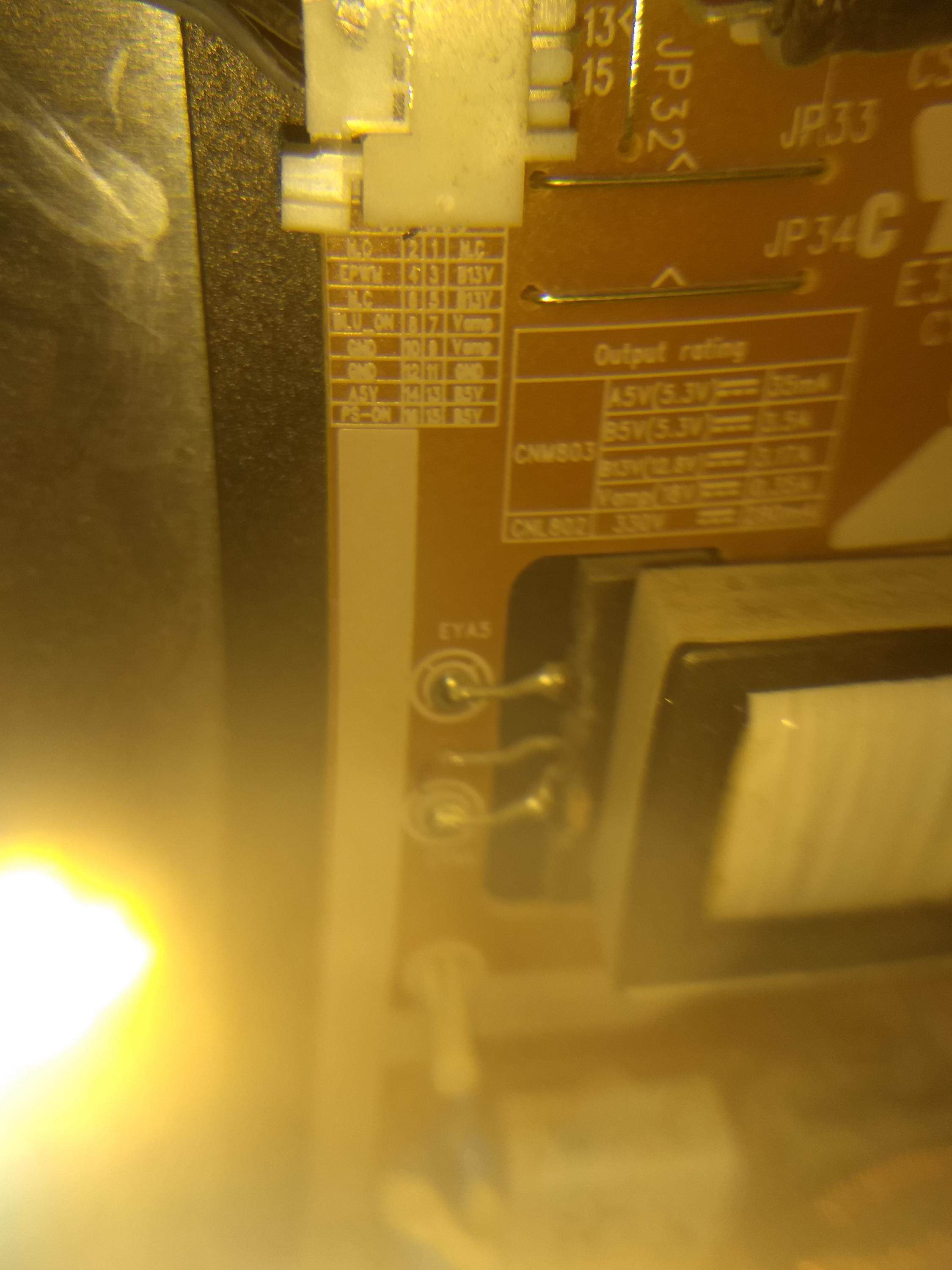 Picked this TV up and they said it will no longer power on. When you plug it in the TV will flash the Samsung logo and power off with the standby light blinking 3 times and it will not power on. If you unplug the main board and turn it on the backlights do come on and the tv will stay running as well but of course with no picture so we know the backlights at least work. Any insight would be much appreciated. Below will be the voltages for the main board and power board while powered on