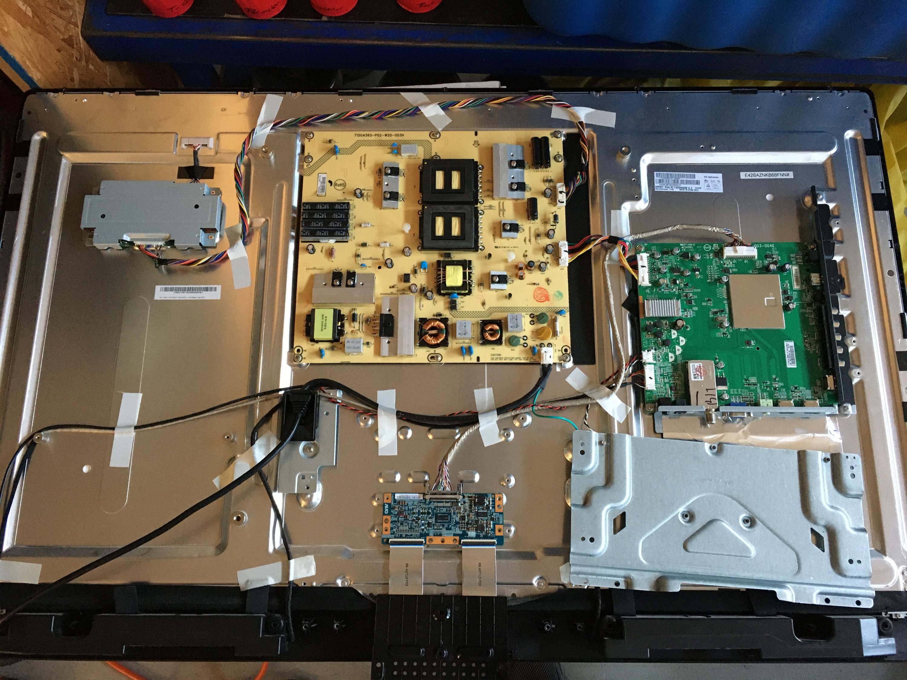 Would this be a T Con Board issue, Main Video Board issue, or something else? Powers up fine so wouldn't think it's a Power Board issue. This is my first time trying a DIY fix for a TV and none of the youtube videos out there seem to cover my specific issue. Thanks!